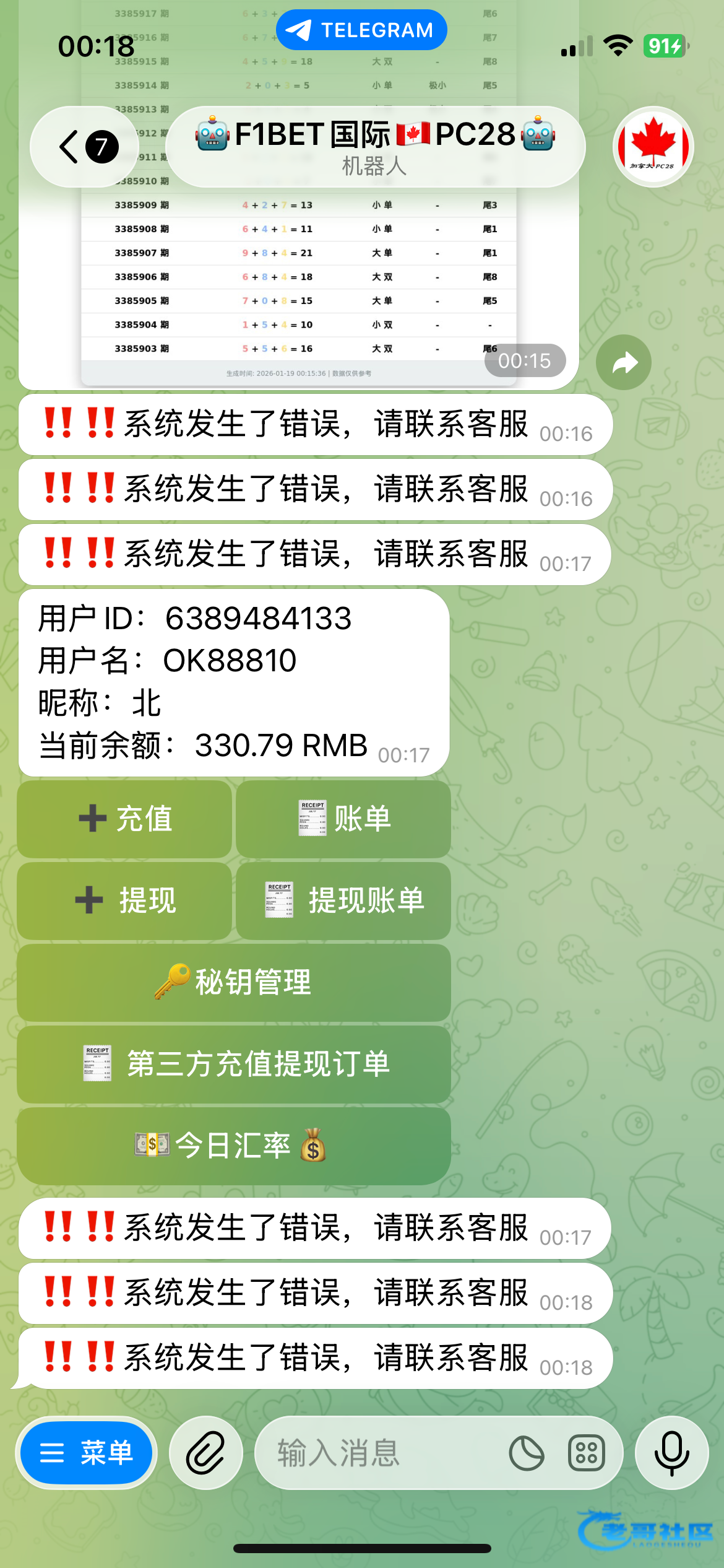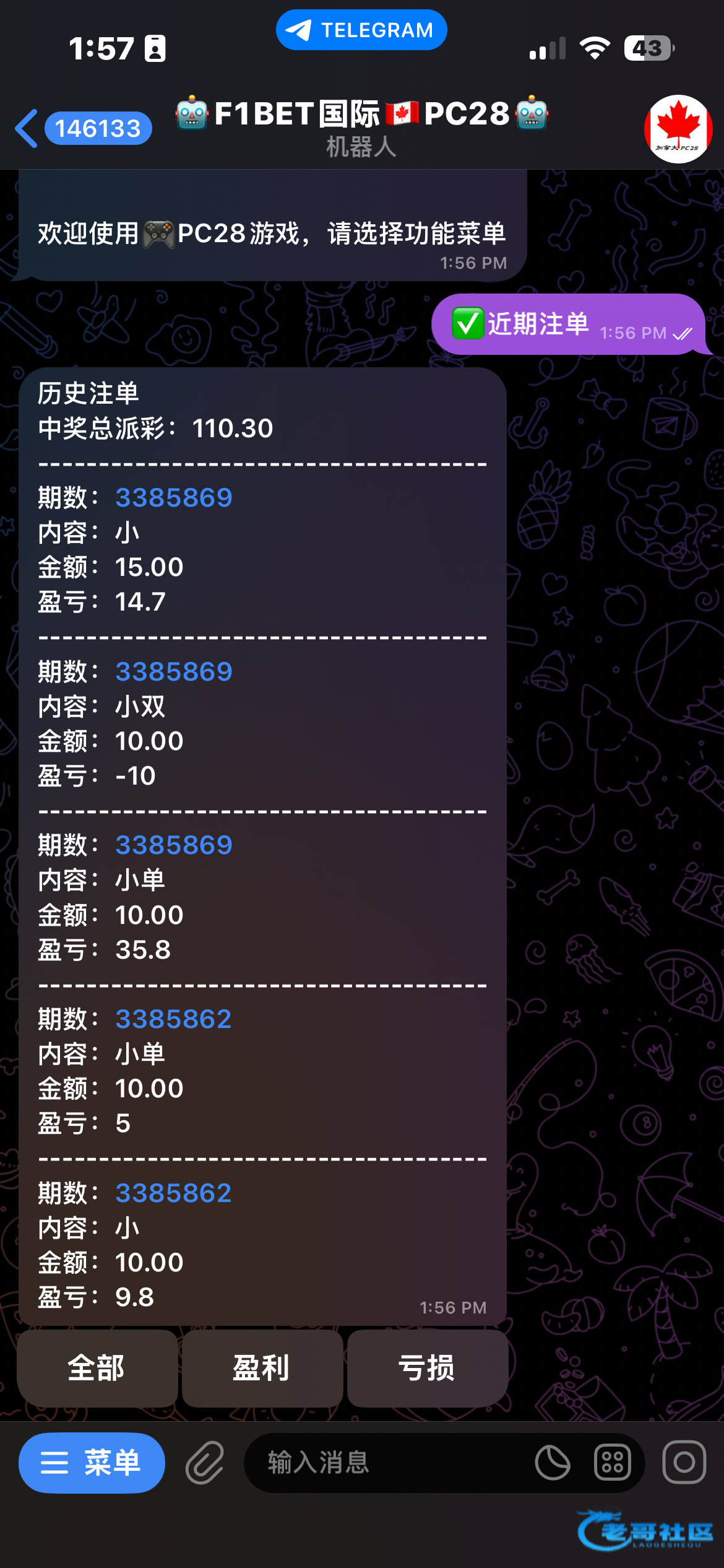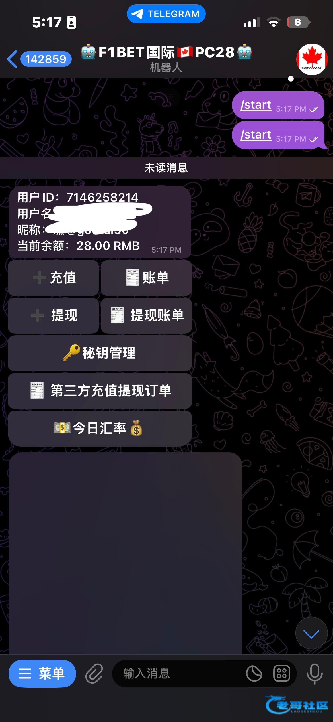 机器人 @F1betPc28_bot 进去就送28 盈利大于300 下注大于20把就可以下分