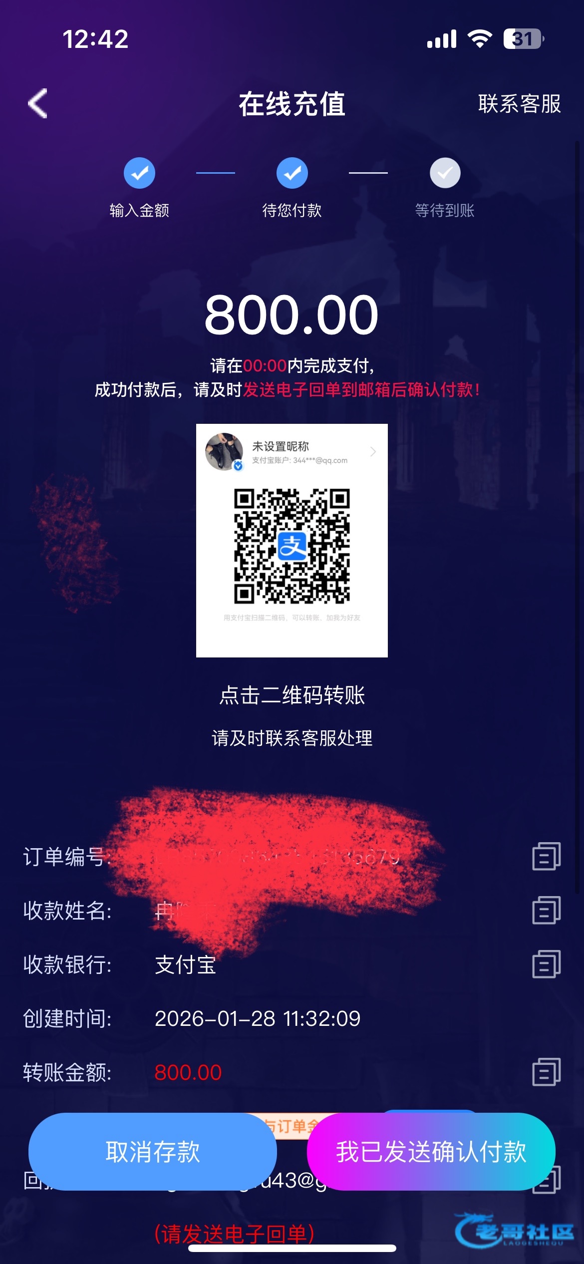 我昨天晚上也是输了,想快点充值梭哈,也是ZFB充值,搞心态一样喊你发邮箱回单,搞了2个小时,最后还是给我到账了,但心态就不好了,上去梭哈一把没