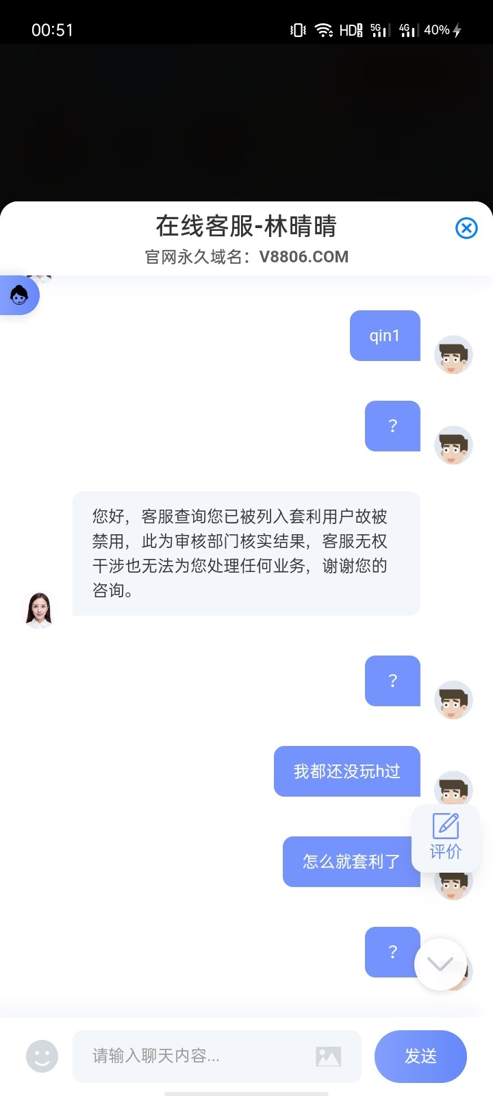 qddya123 ▶ lj8888666 我也是这样的,客服说我非正规操作。 您好,由于系统检测到您使用该账号存在非正规操作行为,因此自动限制了您的账号登录权限,系统限制登录的账号是无法解除的,若后续您使用新的账号进行游戏请严格按照用户协议进行操作!避免影响到您的游戏体验!感谢您的支持~ 2月前