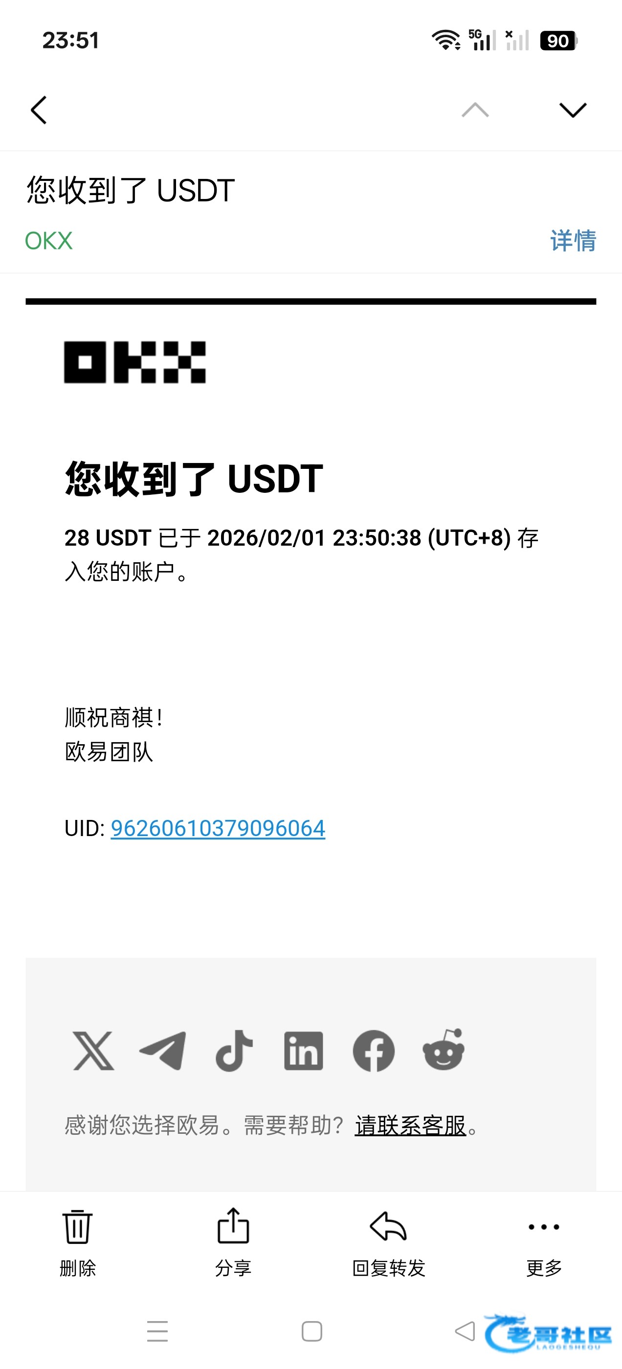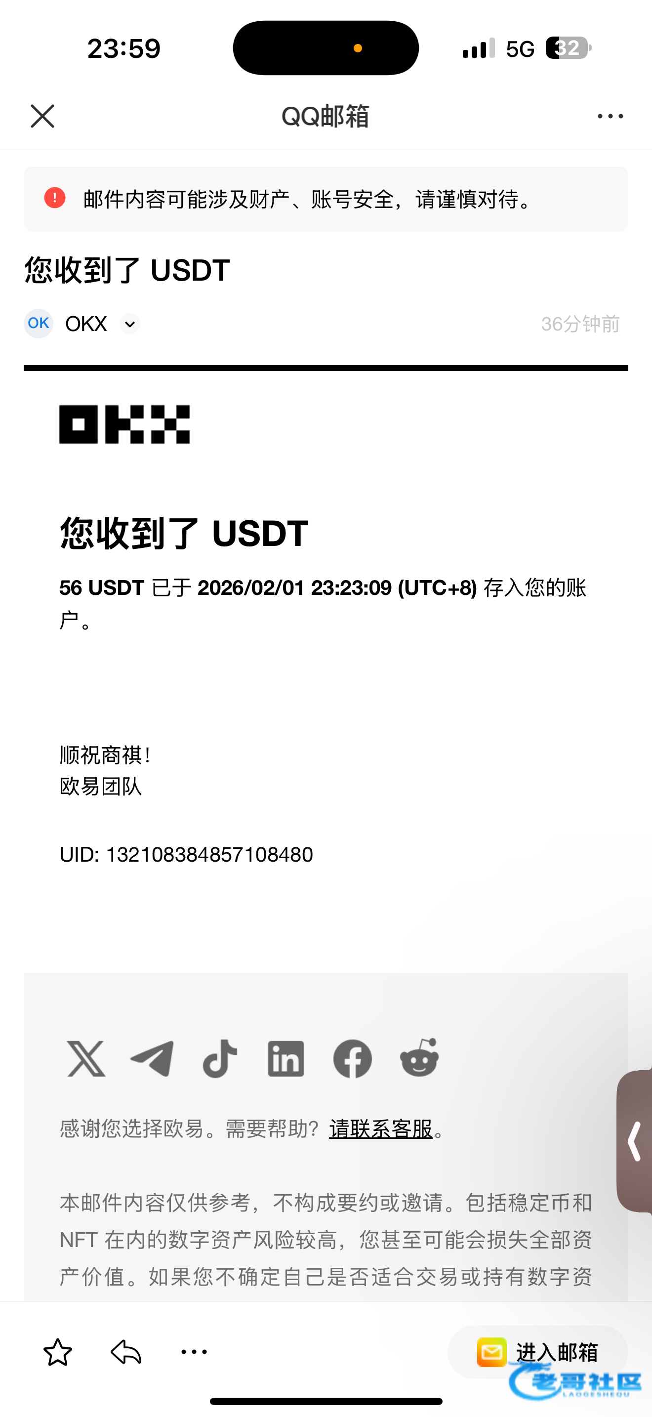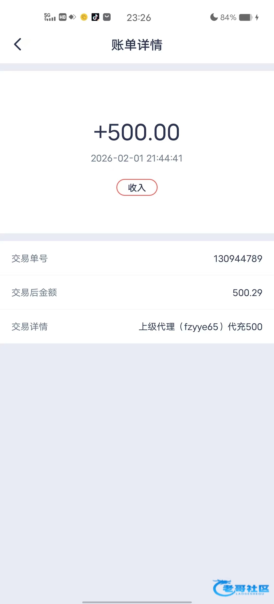 收到老哥返现