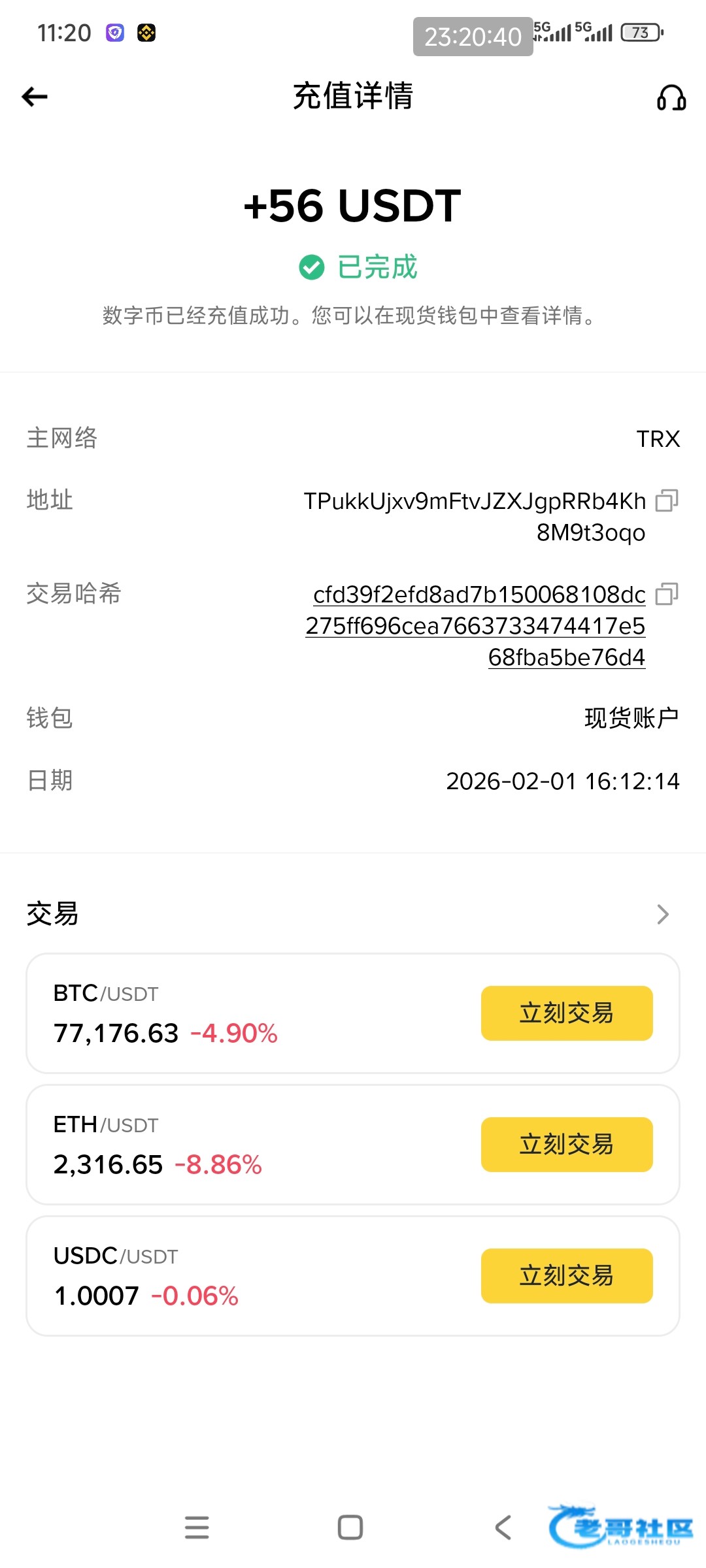 收到老哥返现稳