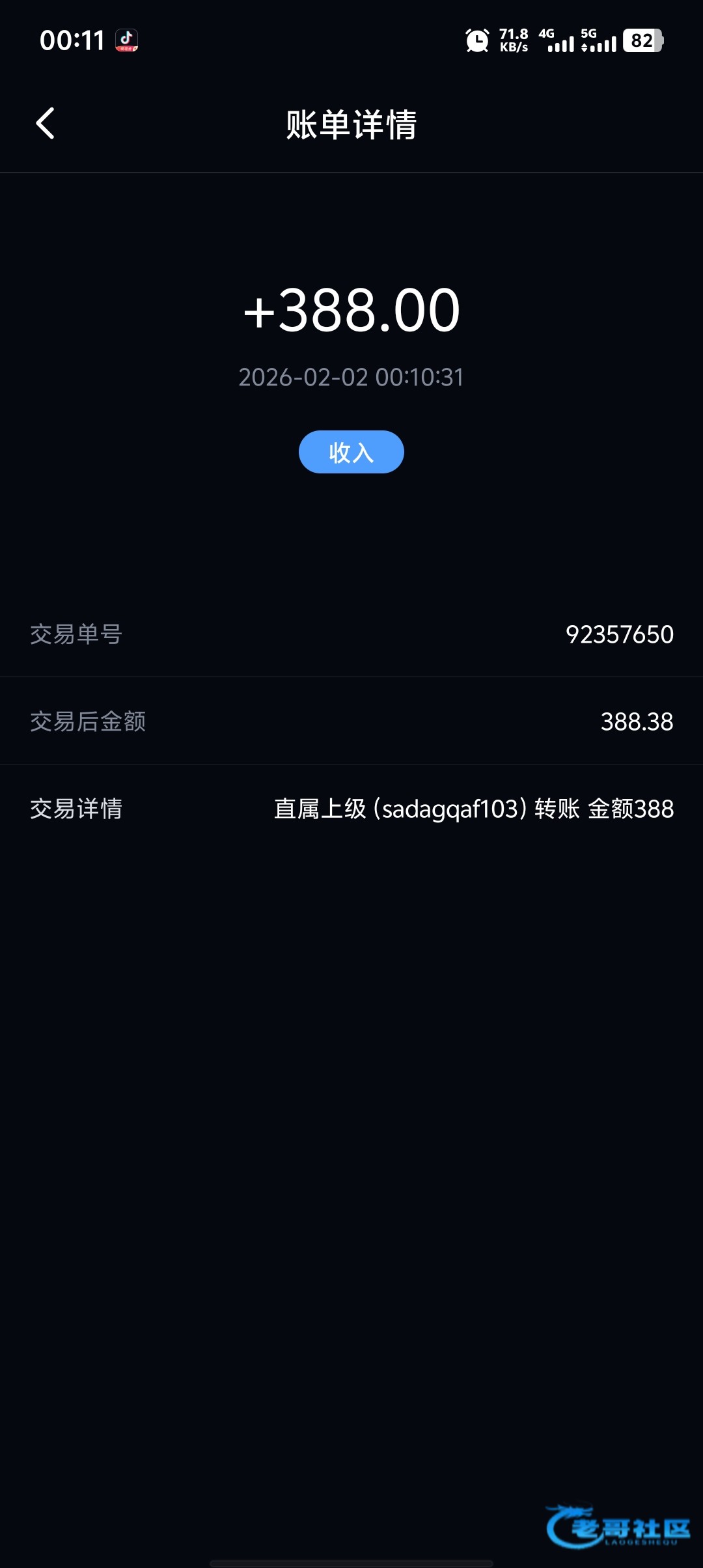 收到老哥388+188
