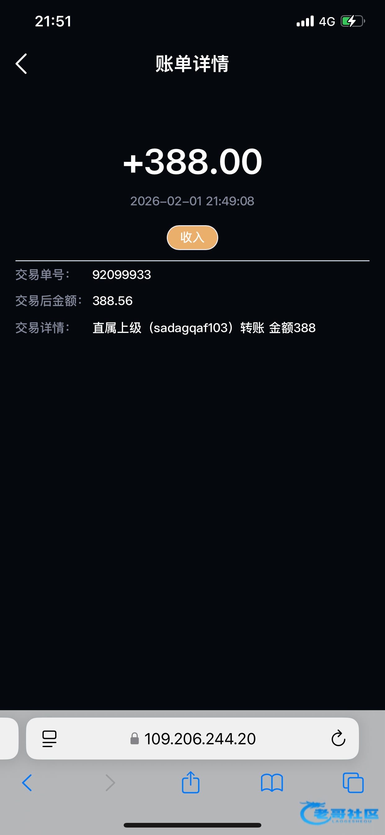 收到老哥188反现。要的彩金 没要U。我只说一句话。打狗认准老哥 就一个字 稳!