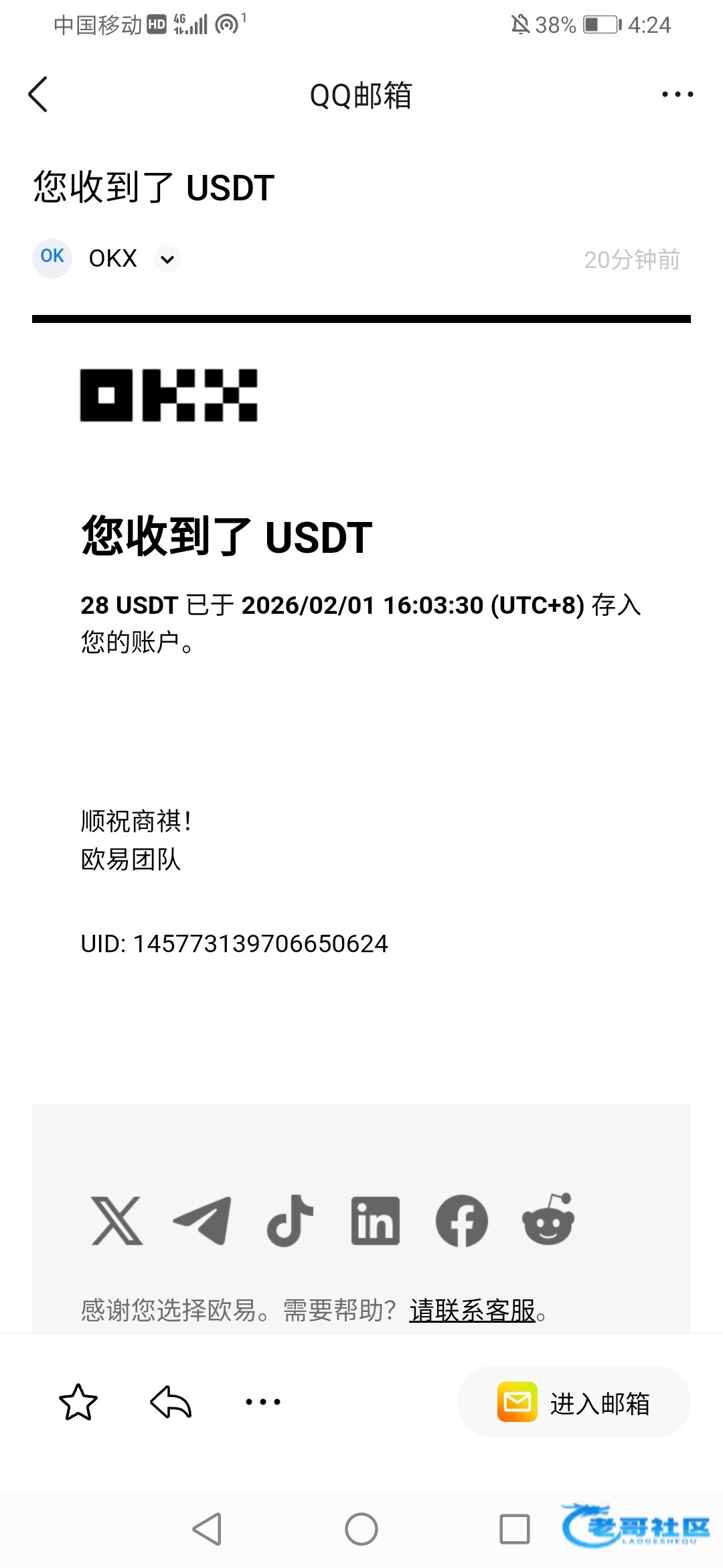 收到老哥388谢谢老哥