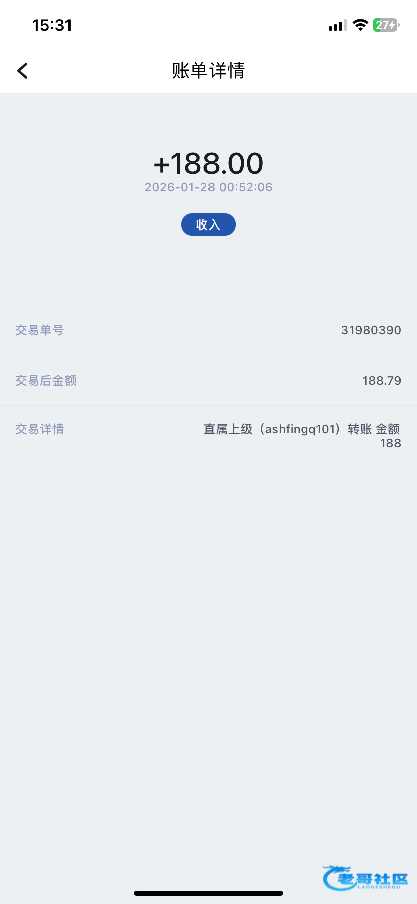 收到老哥返现