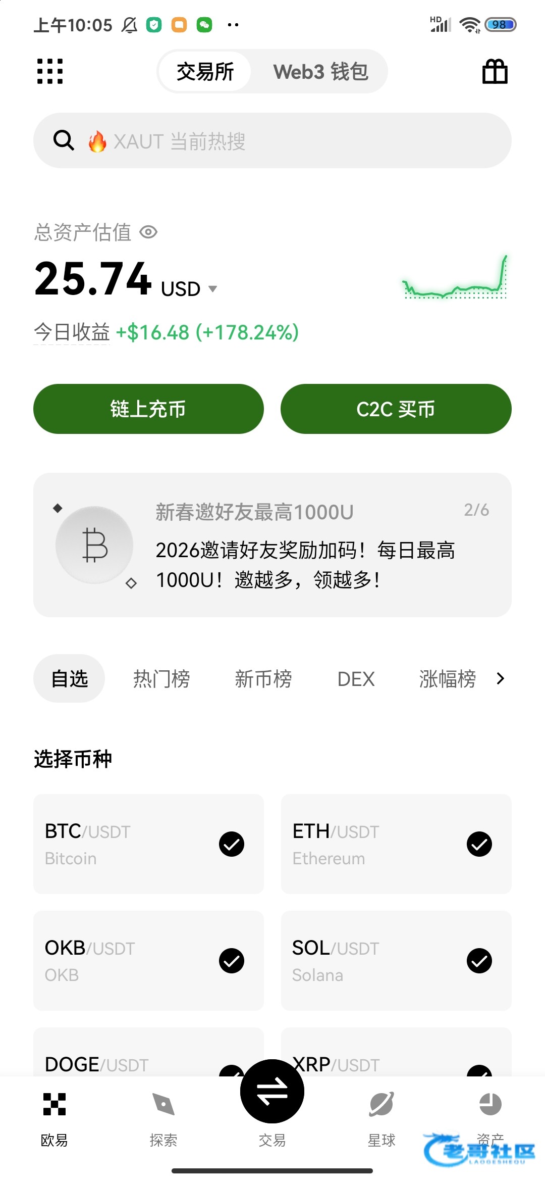 生蚝哥 ▶ 冒壳要发财 抢红包那里抢的体验金 1月前