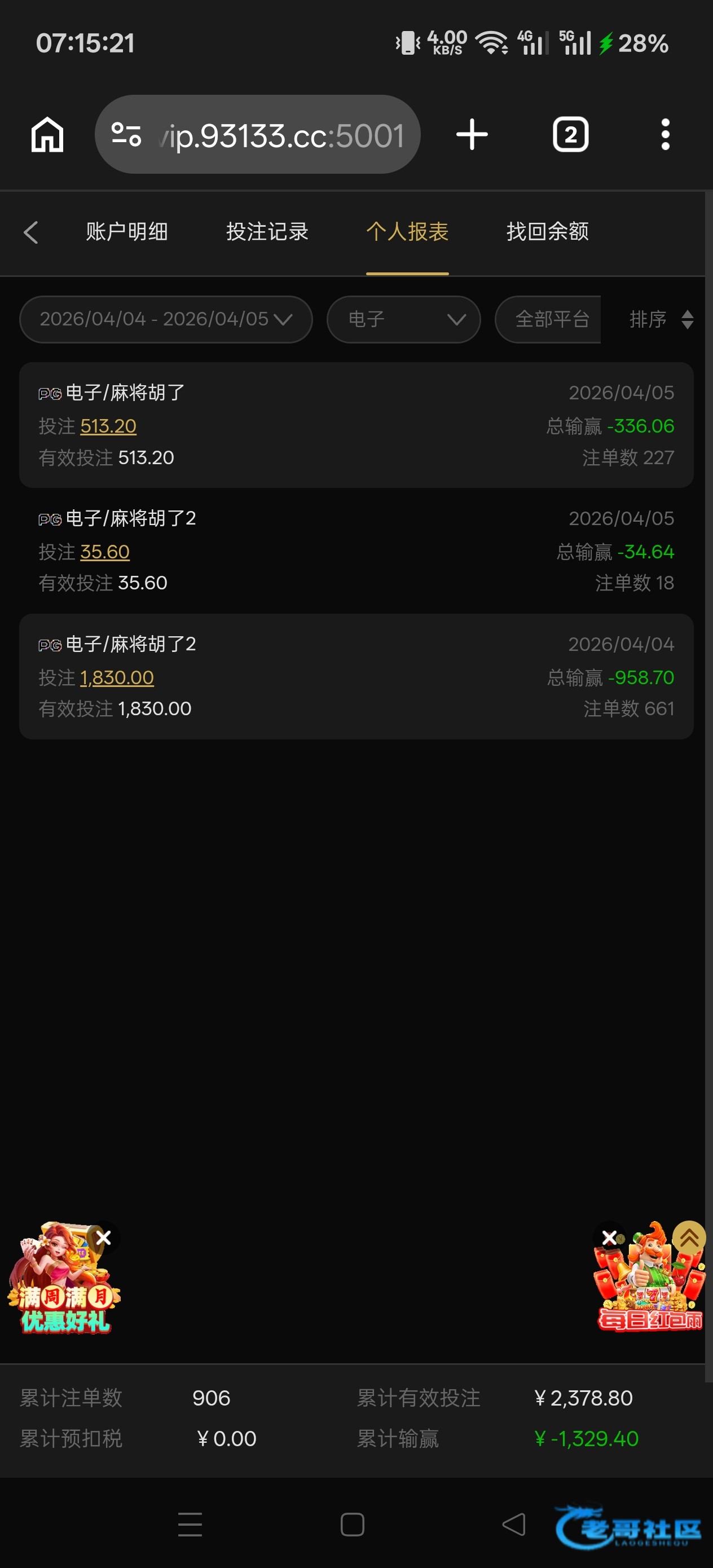 输了接近1400就拉的3块到4块。打2378的流水