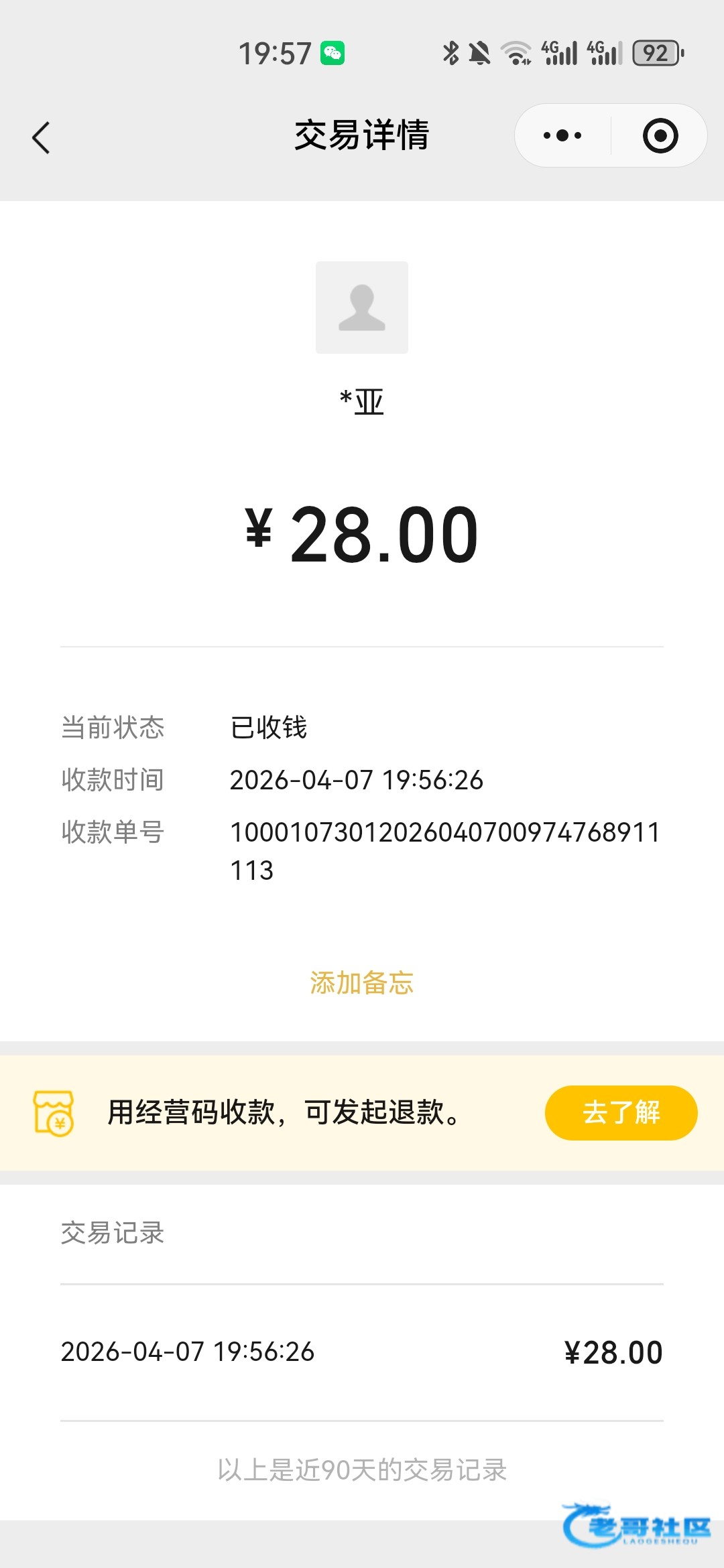 感谢老哥现在到账了,客服直接扫给我了