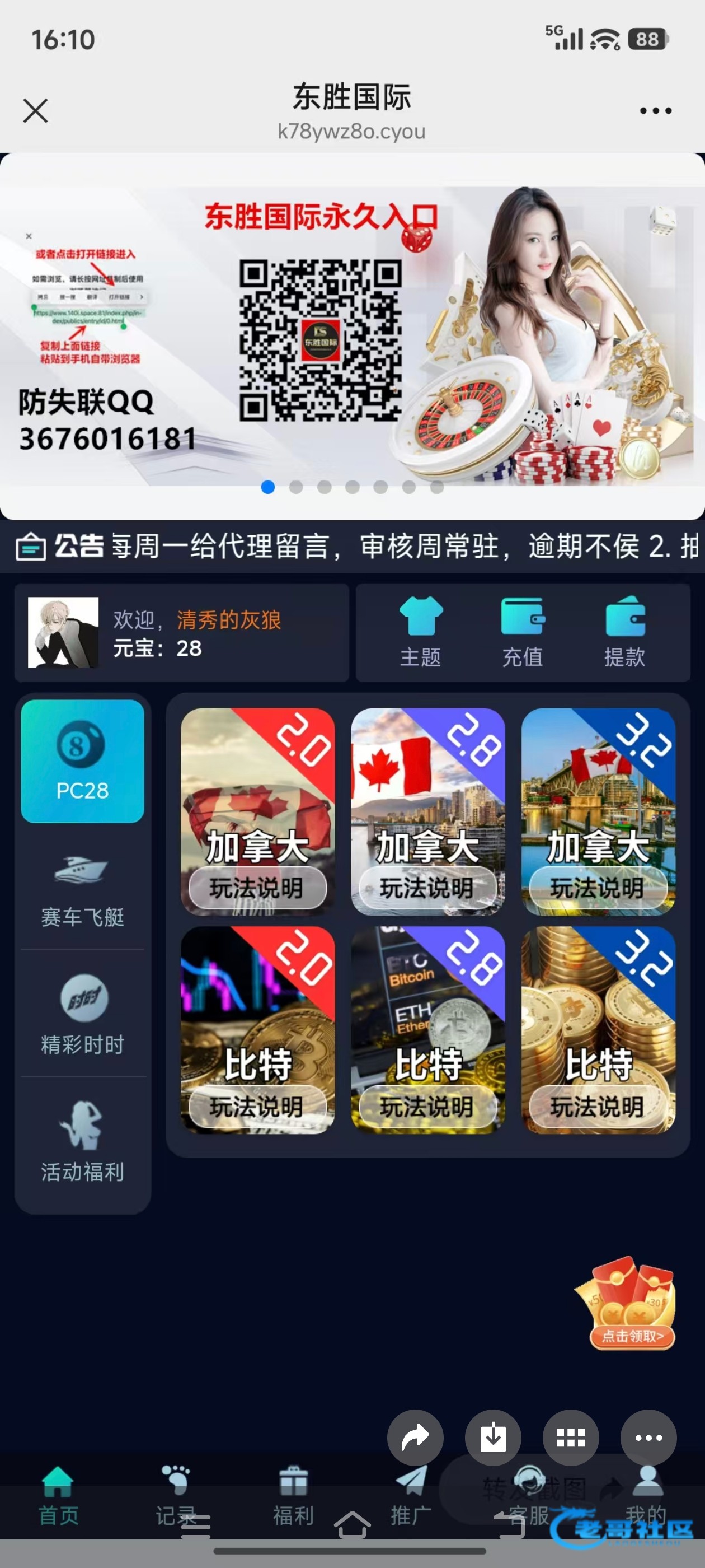 扫码了找在线客服领取28打上188可以下分28块