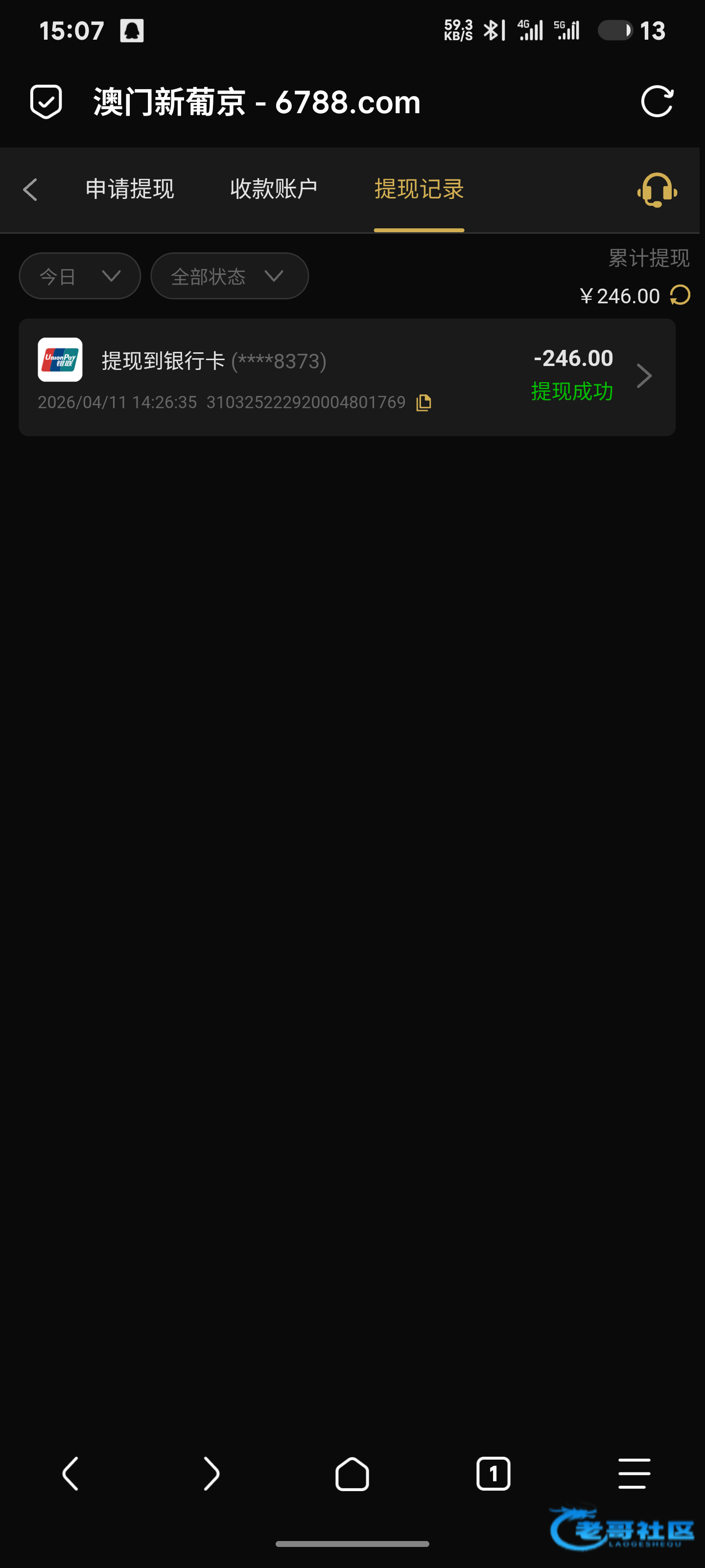 牛逼了 看老哥提现成功去玩了1+1洪水