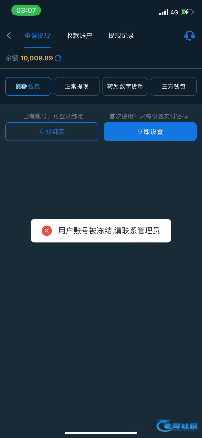 我走你的链接玩九龙国际,提现1万被冻结账号了。 能不能帮我处理一下啊