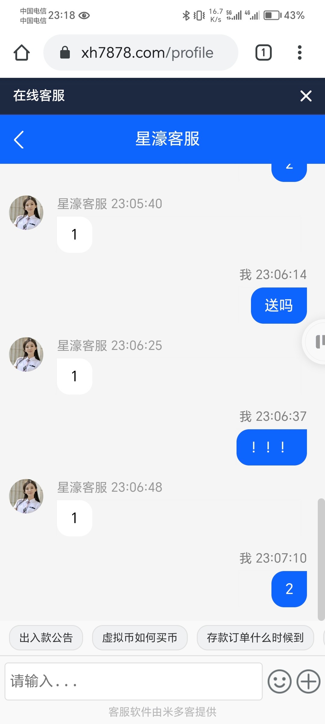 又是一个骗资料的傻逼台。机器人回复除了1就是添加银行卡 用户名。