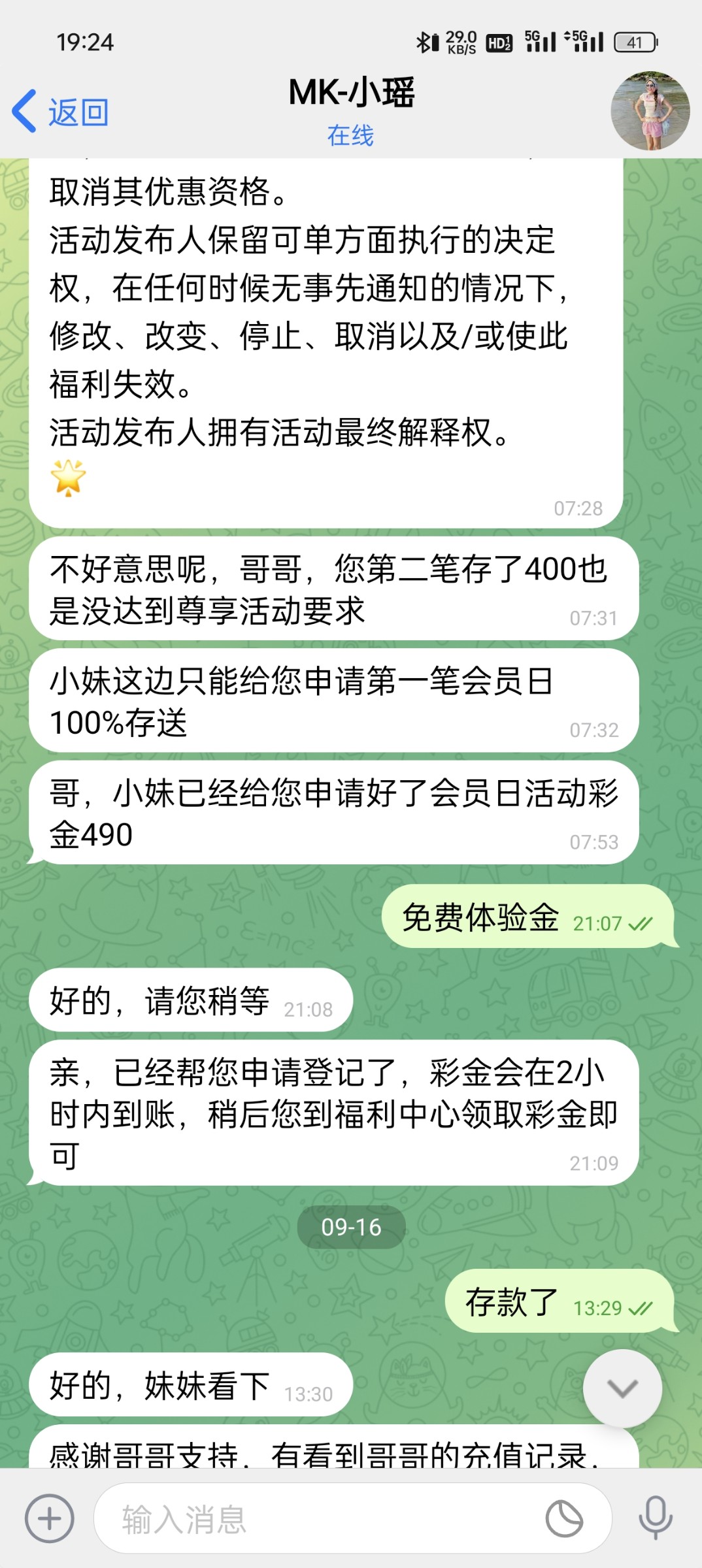 这台今天打电话给我,叫我首充
