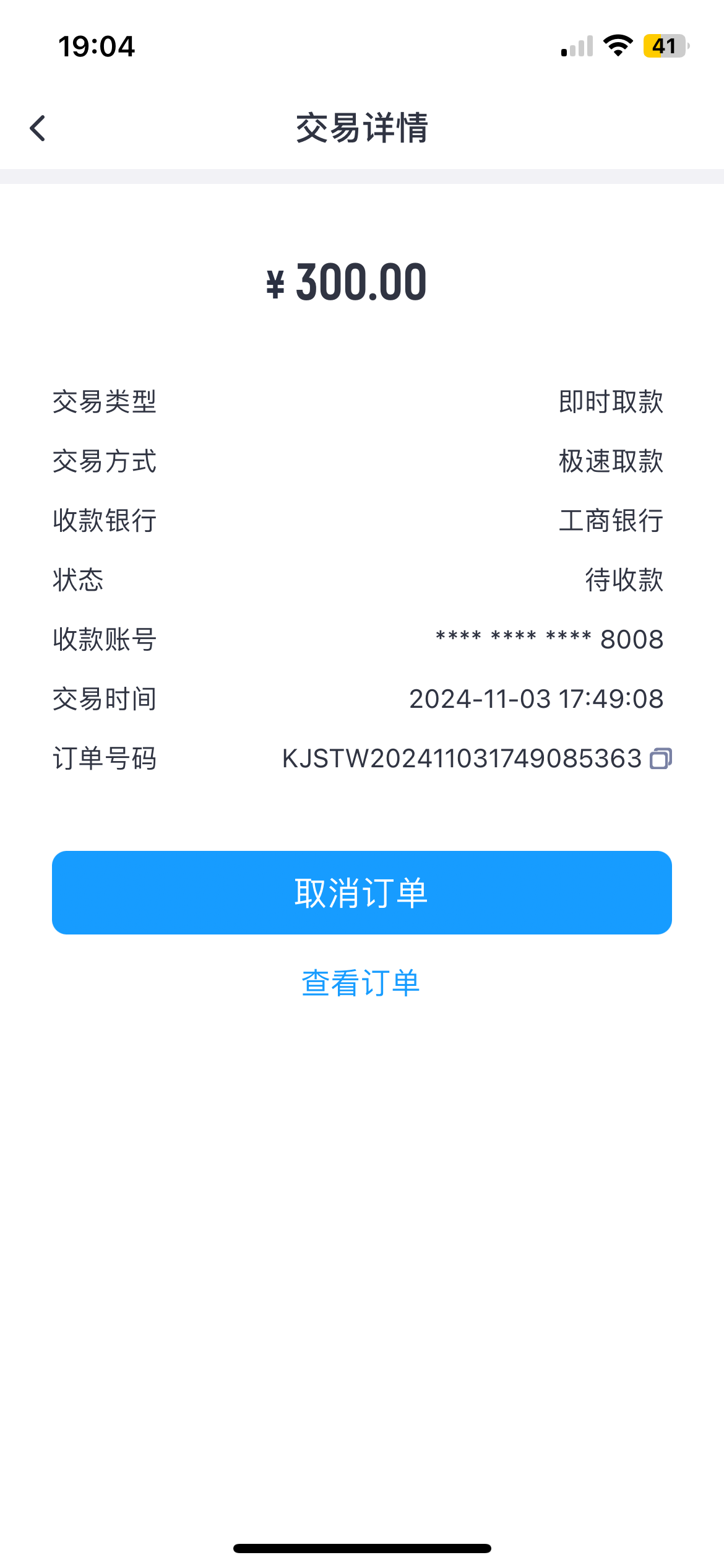 提了300代收款