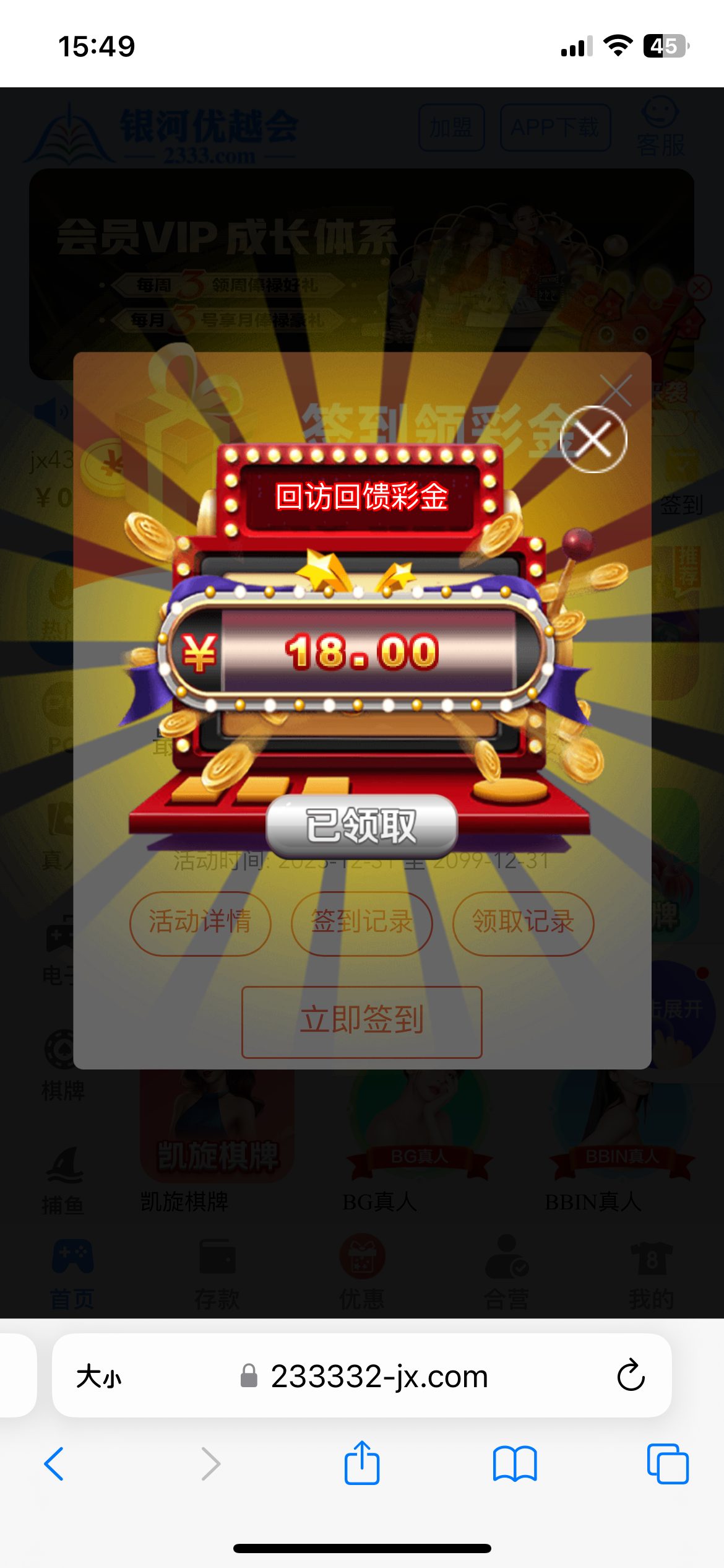 优越会 2333.com 回访彩金,我是接到电话的,上线直接领取