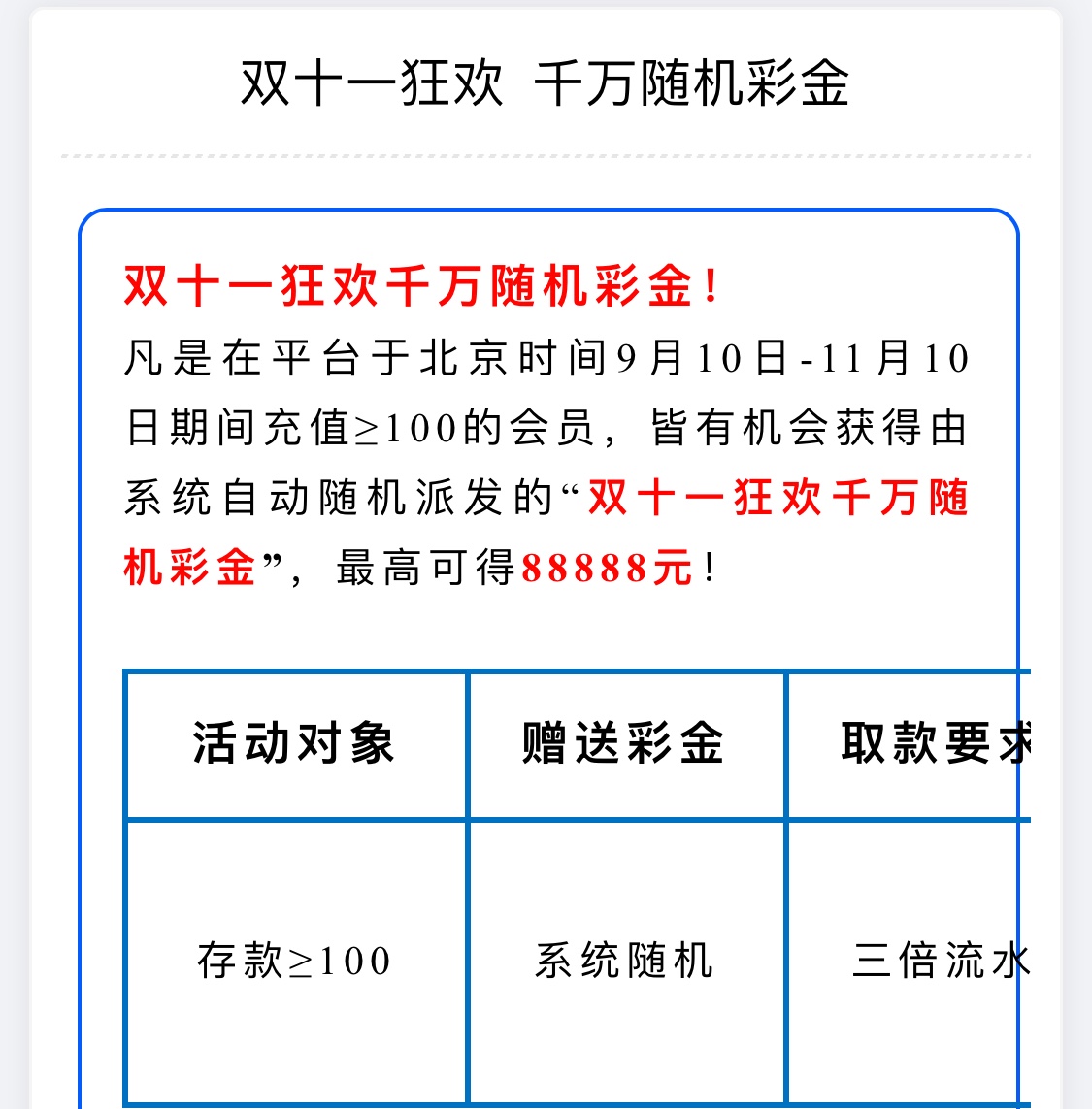 usd双11,随机彩金!9月10到11月10 期间有过存款的,usdbet007.cc
