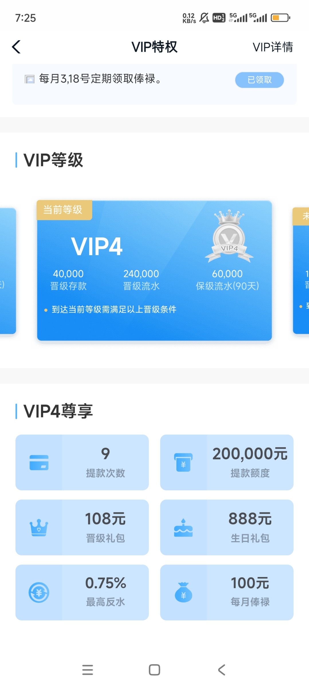 年初在990刷钱能彩金申请了个SVIP领了1999升级彩金 生日又领了2999目前领到最高的