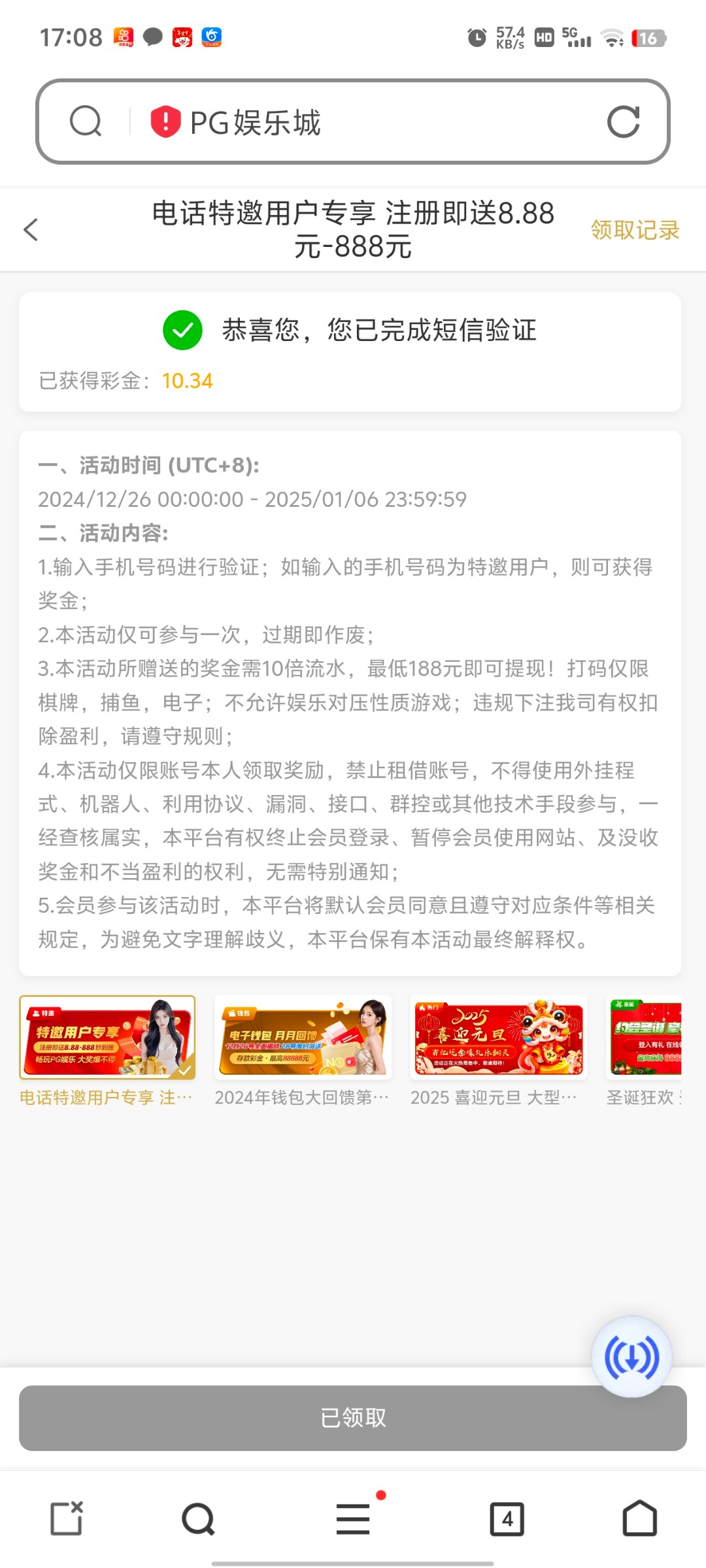 我是接到电话过来的 大家可以试一下我另一个手机号也可以看见活动但是领取不了 地址 66215.vip