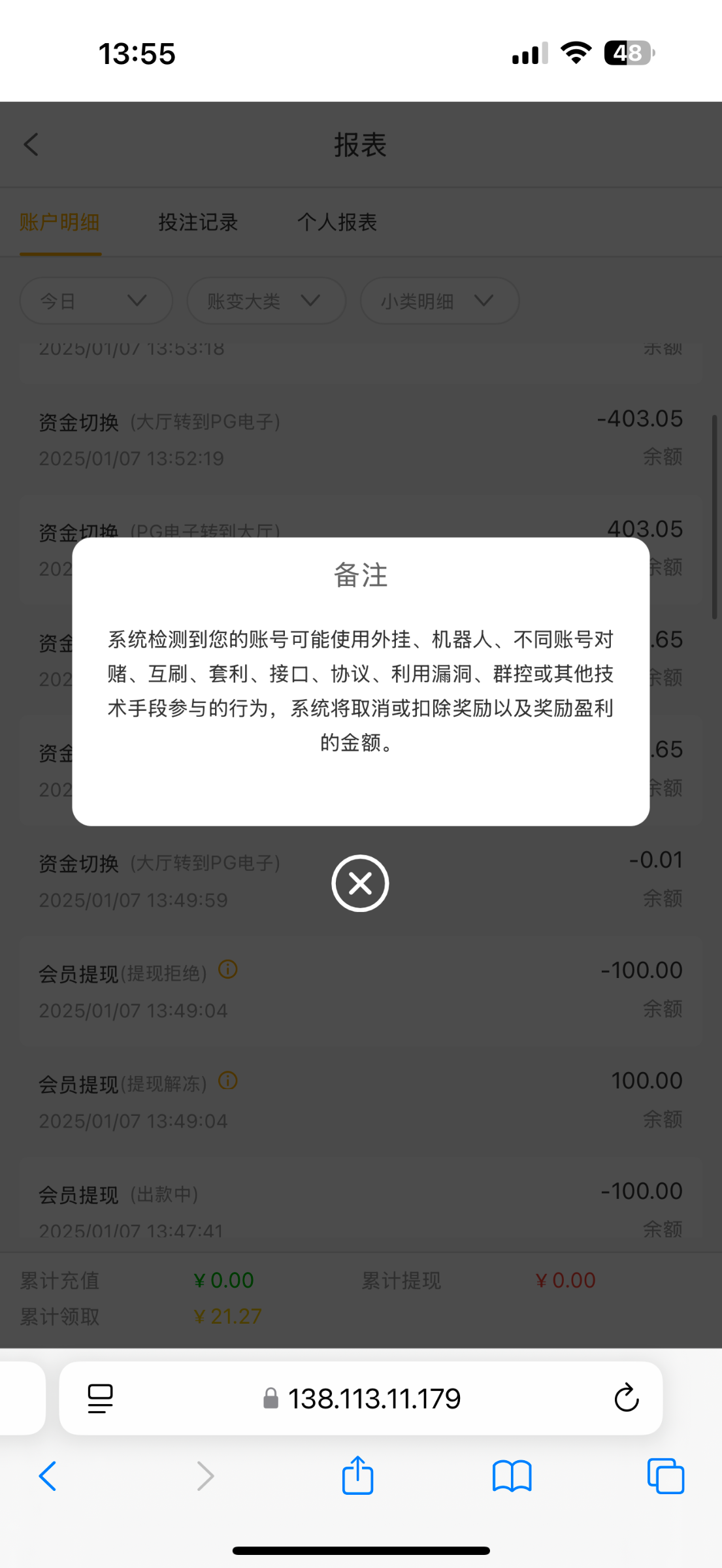 出款情况:自测(禁止充值)