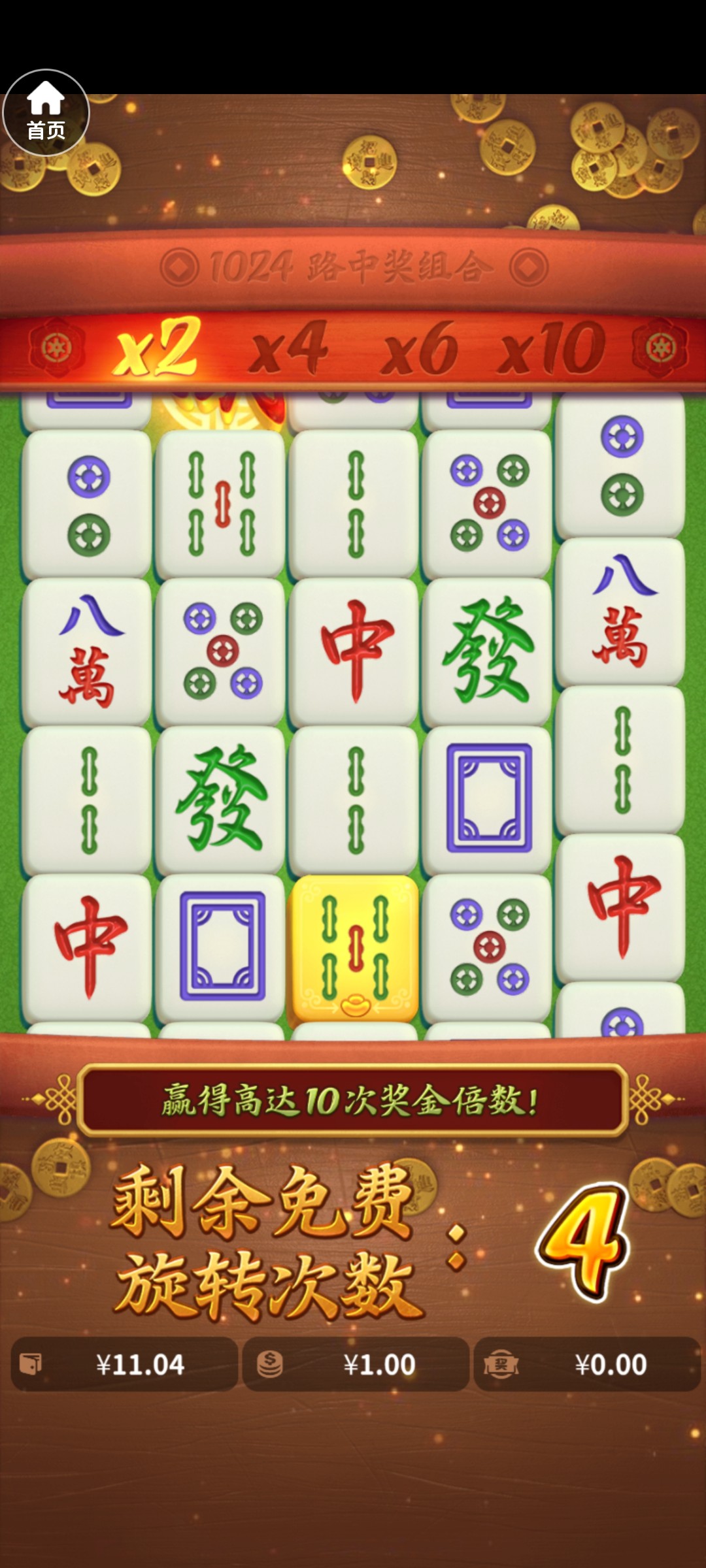 垃圾pg,麻将1三次夺宝两次空转,一次5倍
