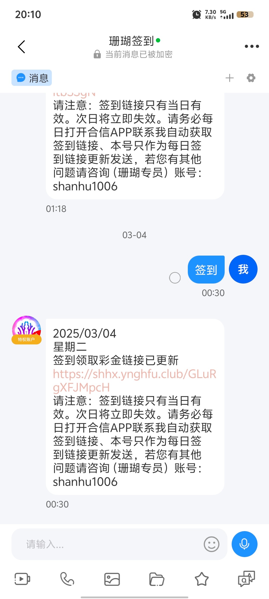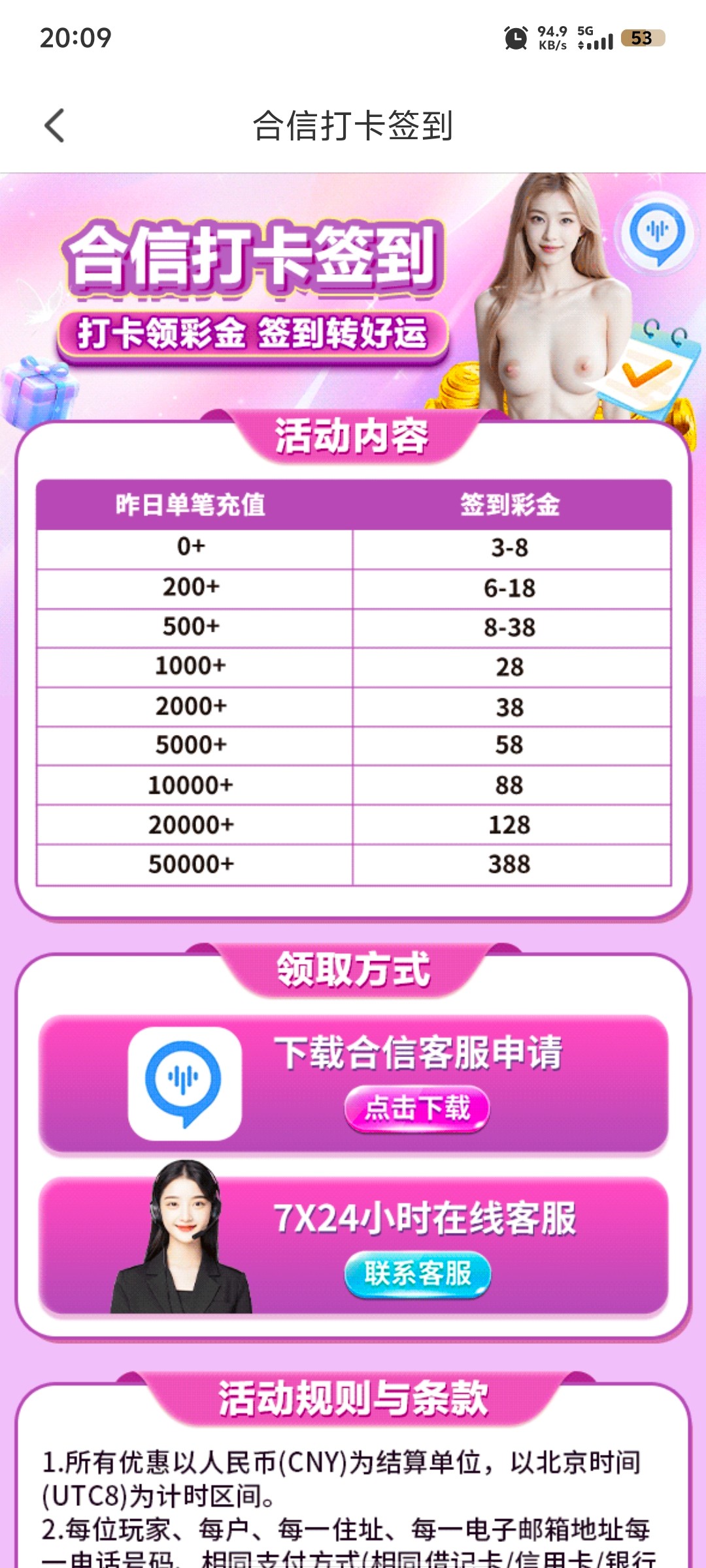 3。每日签到,联系客服获取合信专属客服,每天不用充值白嫖3-8元