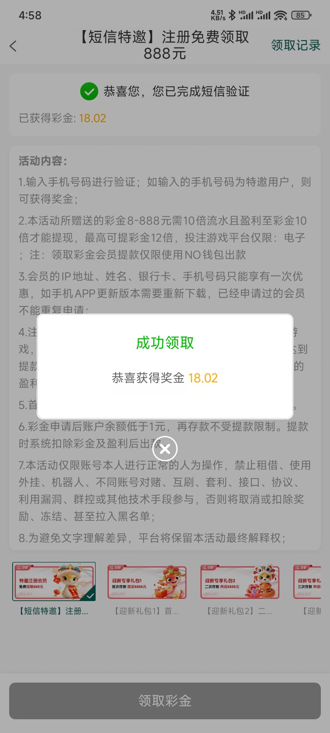 打4个号一个都没打出来 一点水都没有 免中免0.4就给了7元
