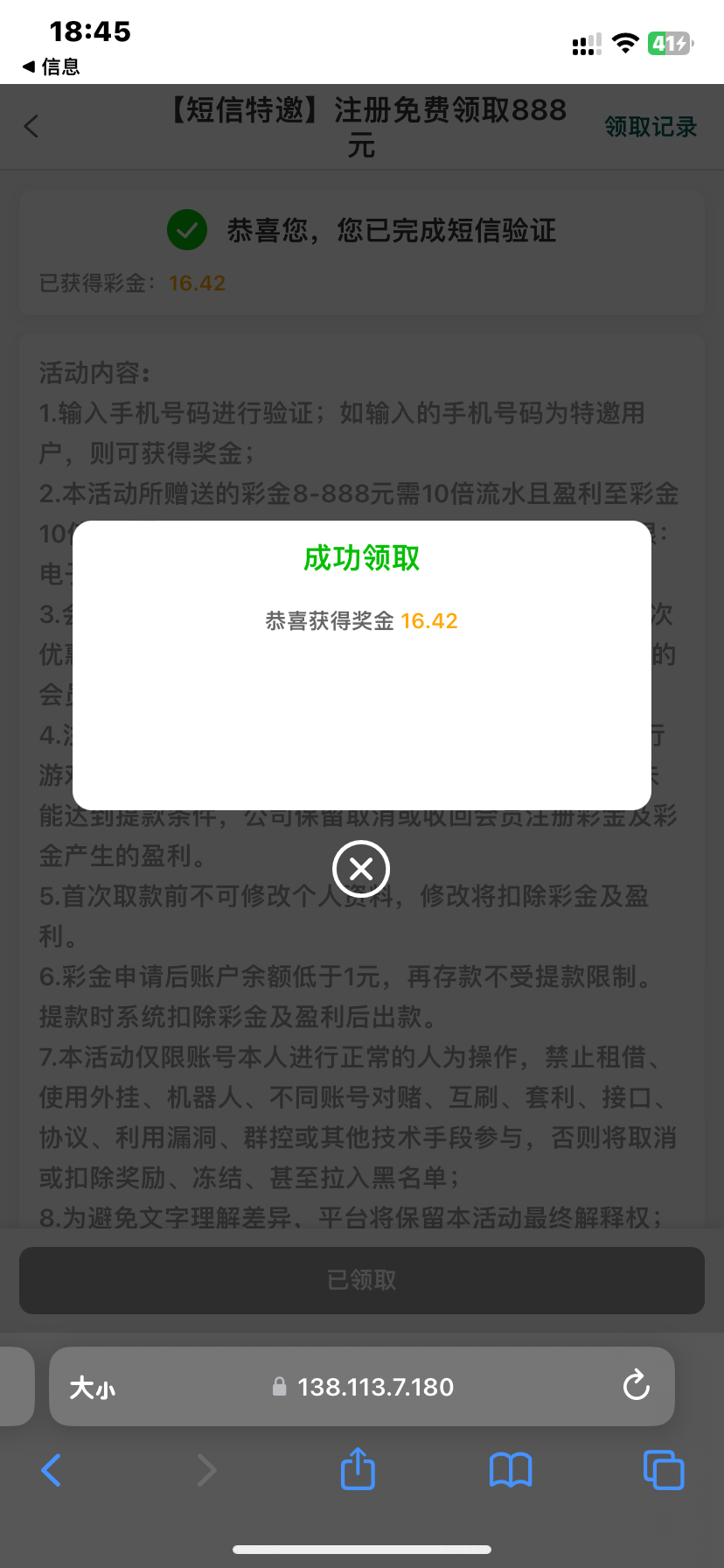 看看有没有这个短信吧,我领了16没打出来一点水都没有,地址: http://aa.bkjvz.com