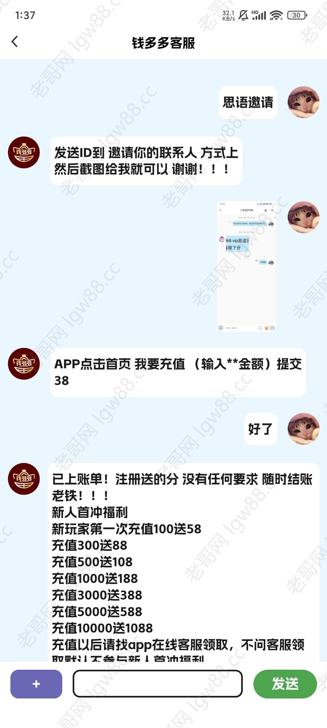 登录思语查看一下有没有收到这个人给你发的消息,没有的话就没必要去碰了,因为要给这个人发送你的平台ID才会给你送的,网址:qdd68.vip 有的话先去下载平台找客服说思语邀请,客服会让你发ID过去思语截图给他的,我四个号收到下了两个号,都是秒到的,别充值,白嫖就好。