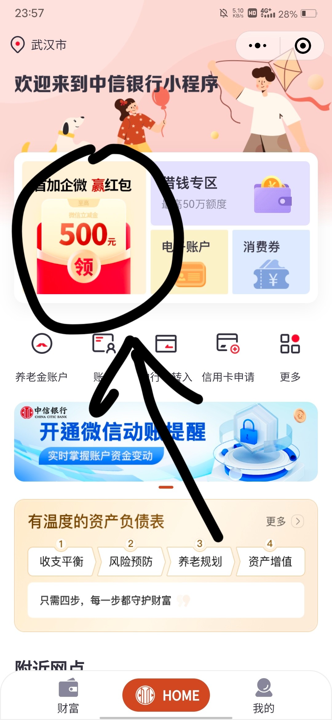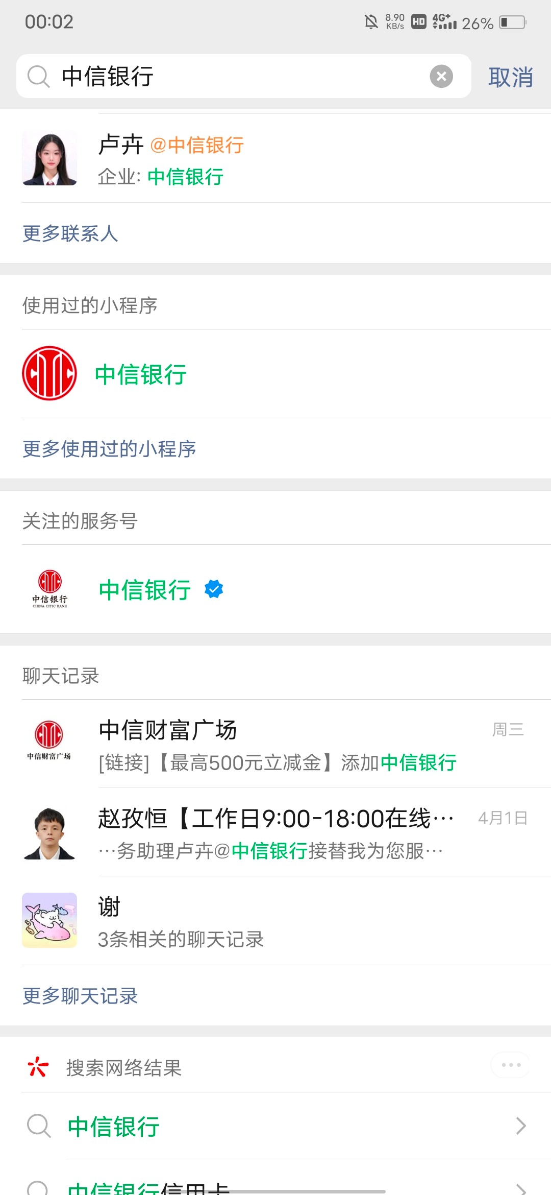 微信搜索中信银行小程序,看清楚是小程序,不是公众号