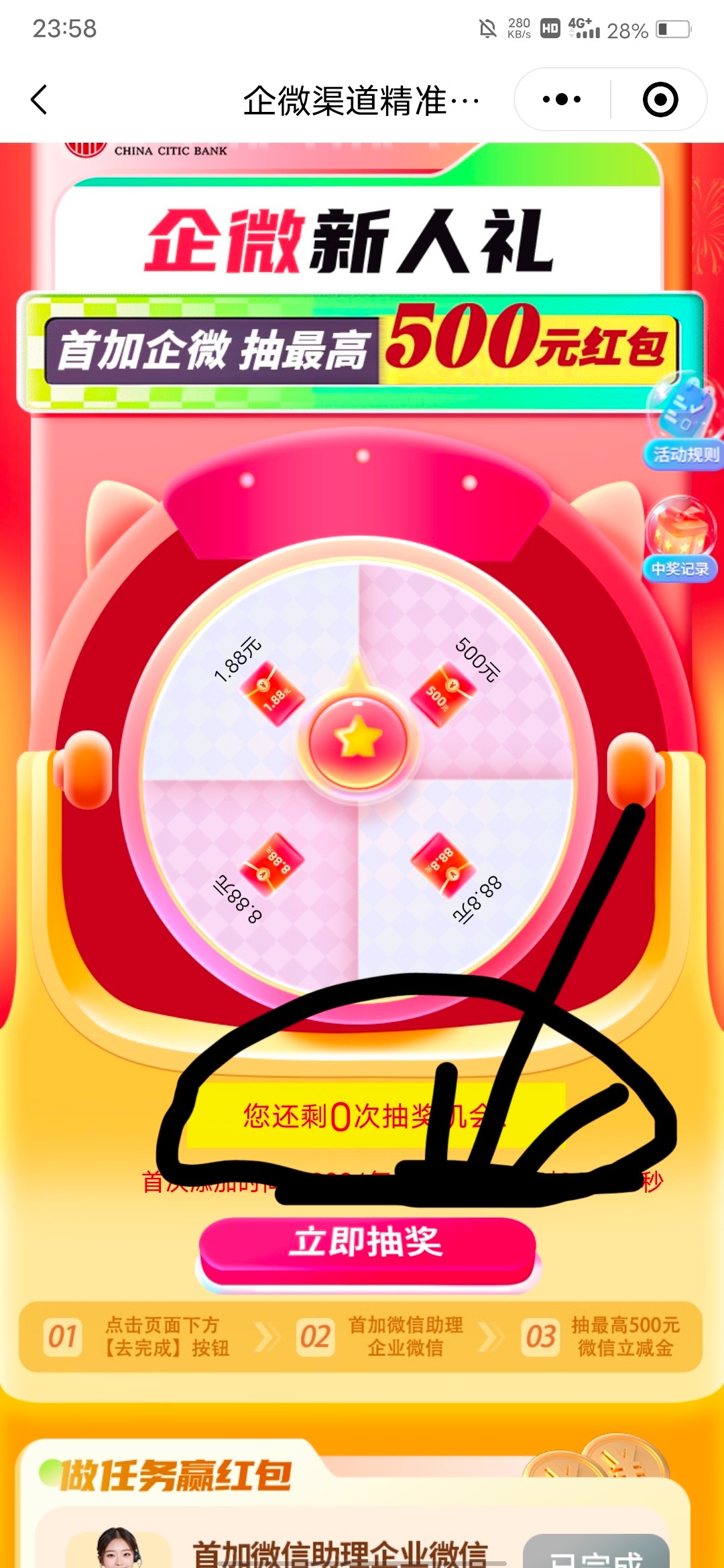 第二个号抽奖那里没注册,直接登录第一个号结果没次数,重新注册也没次数