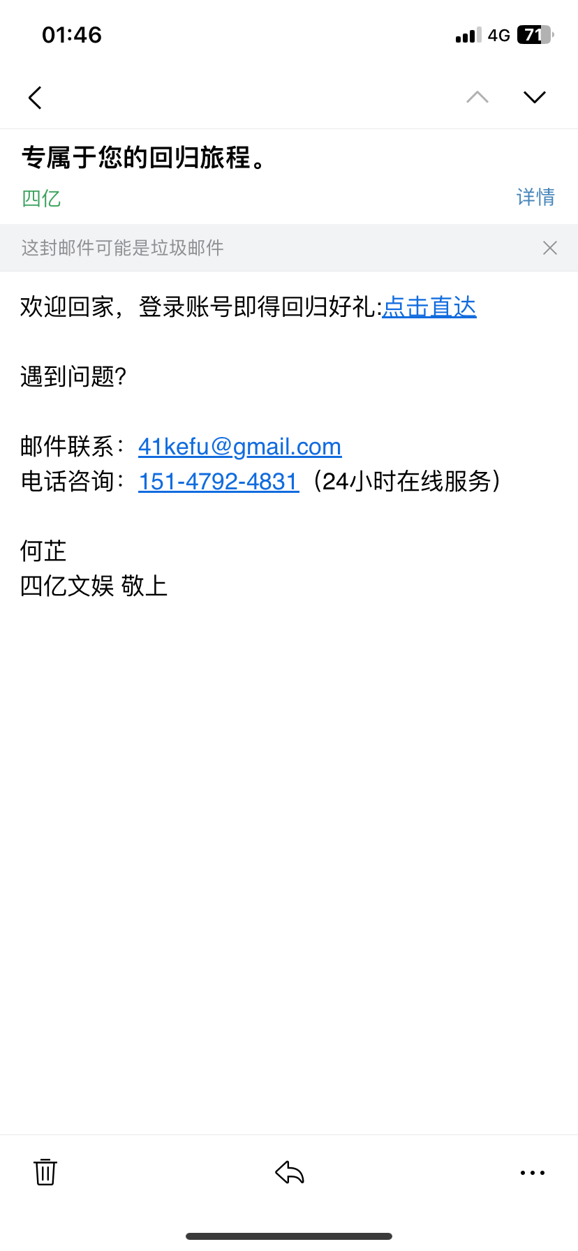 四亿绑定邮箱的可以去看看邮箱有没有信息来
