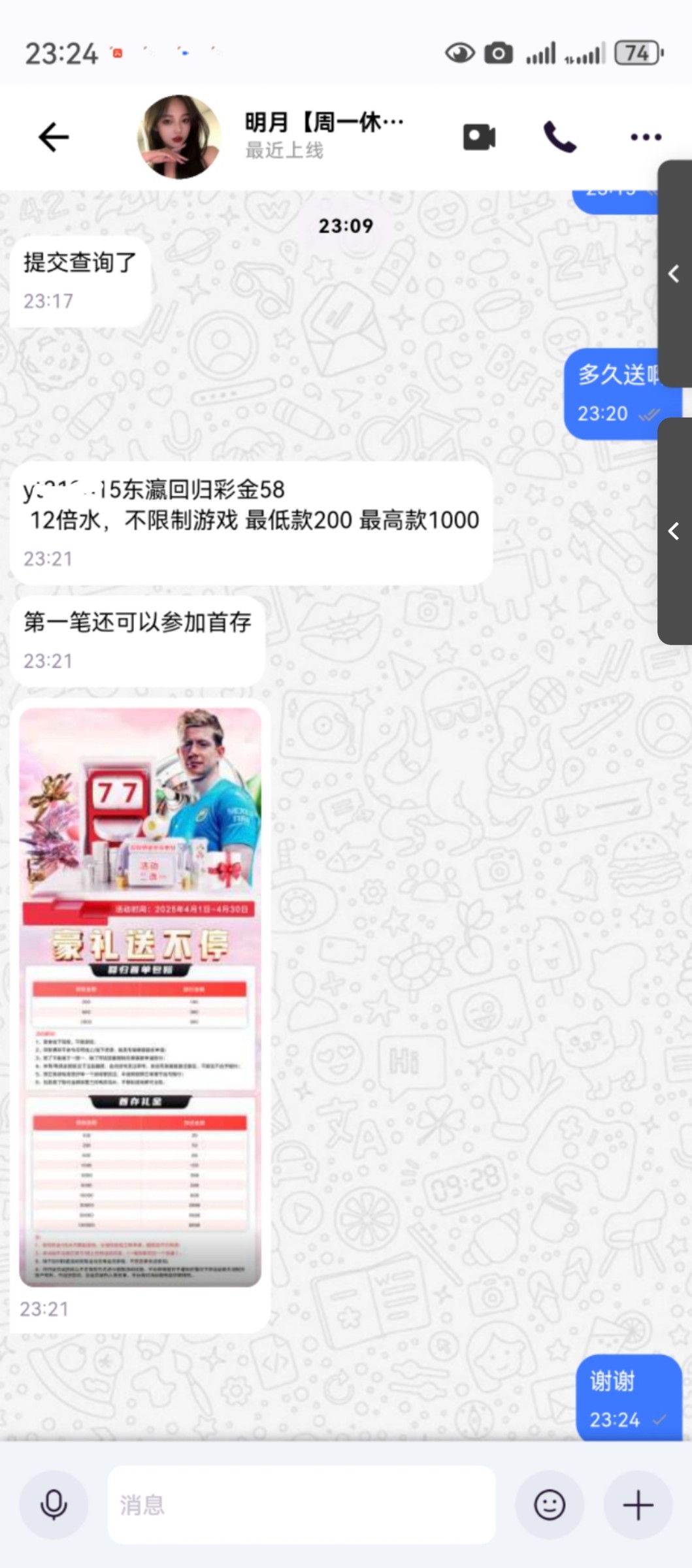 另一个客服,要求充100