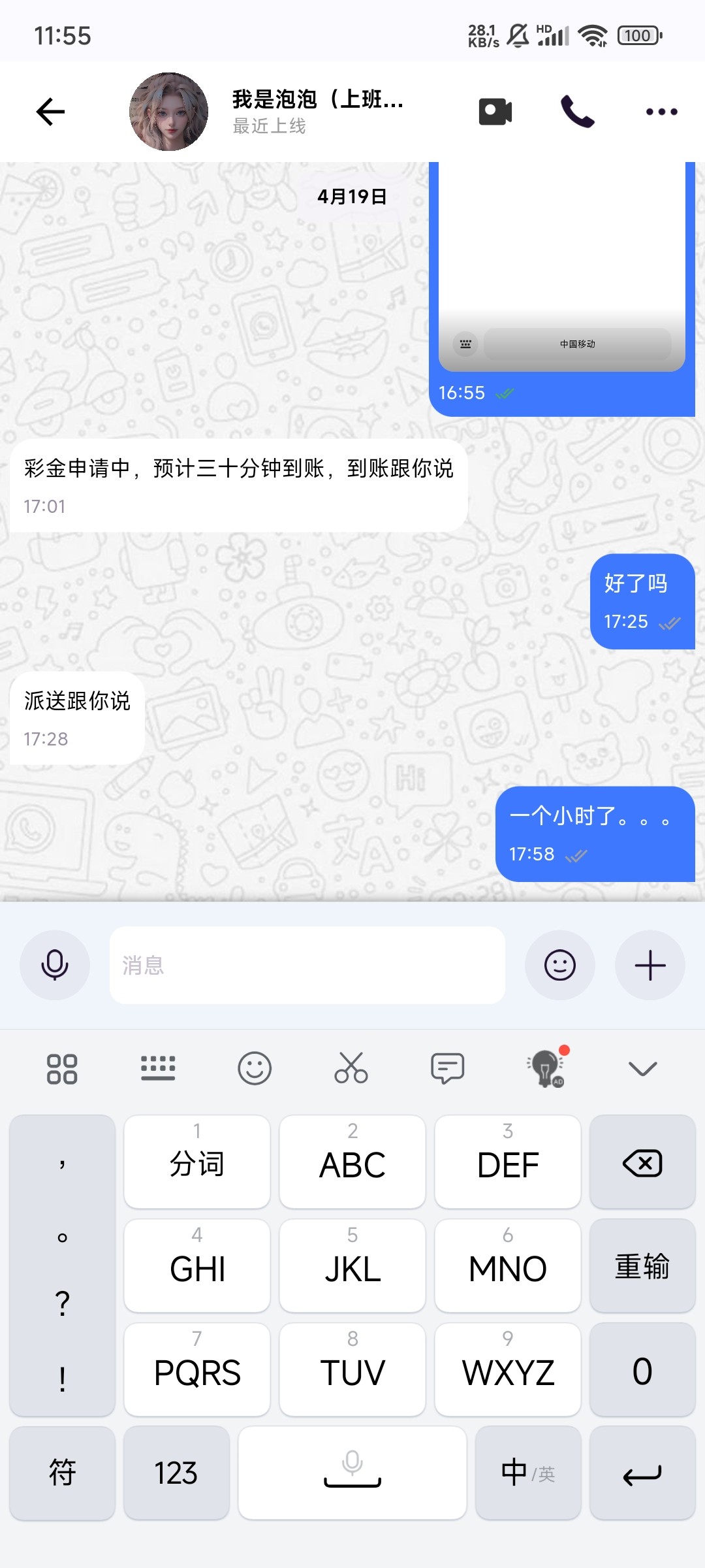 我收到短信的,申请了半天了还说在排队