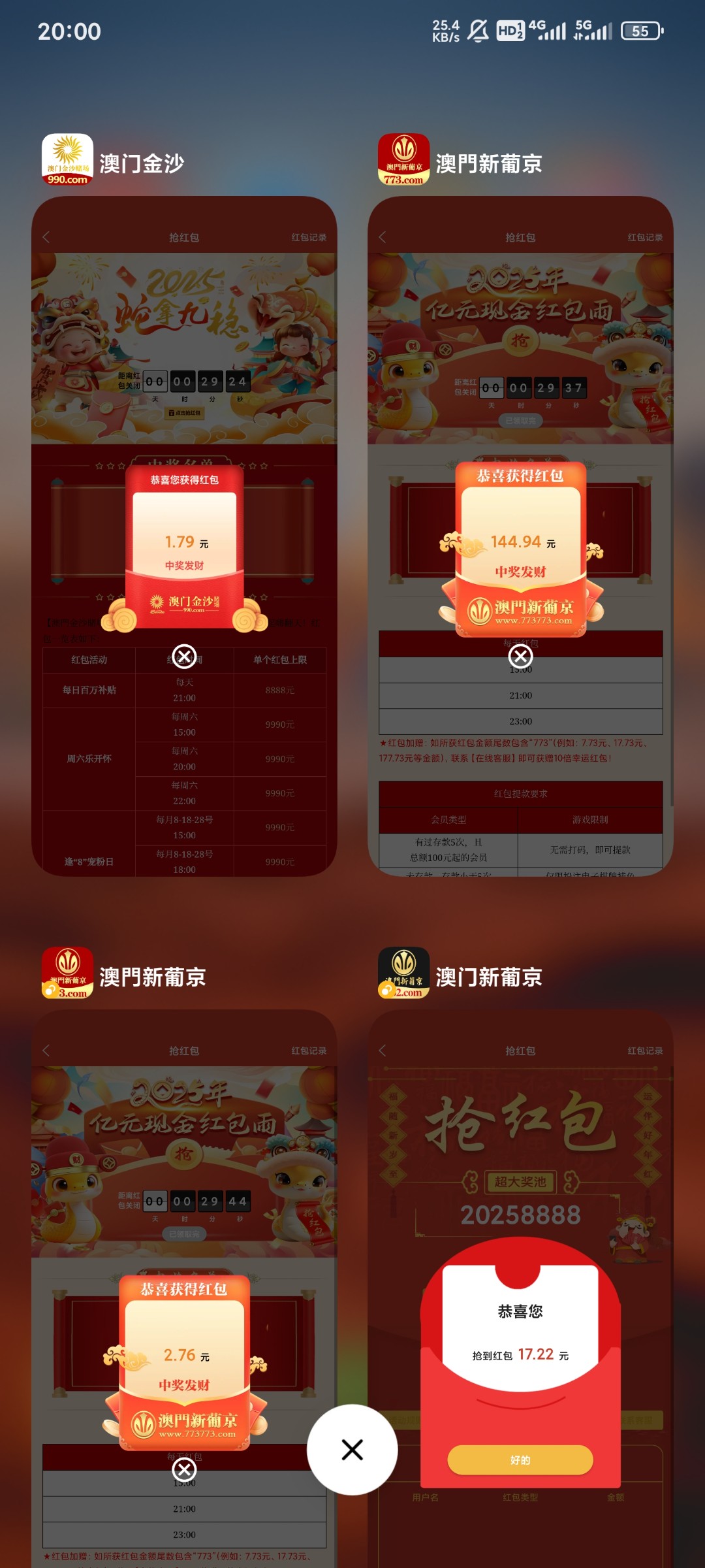 抢了8+6+24。今天,不过没啥用,加送的10。一毛都没打出来