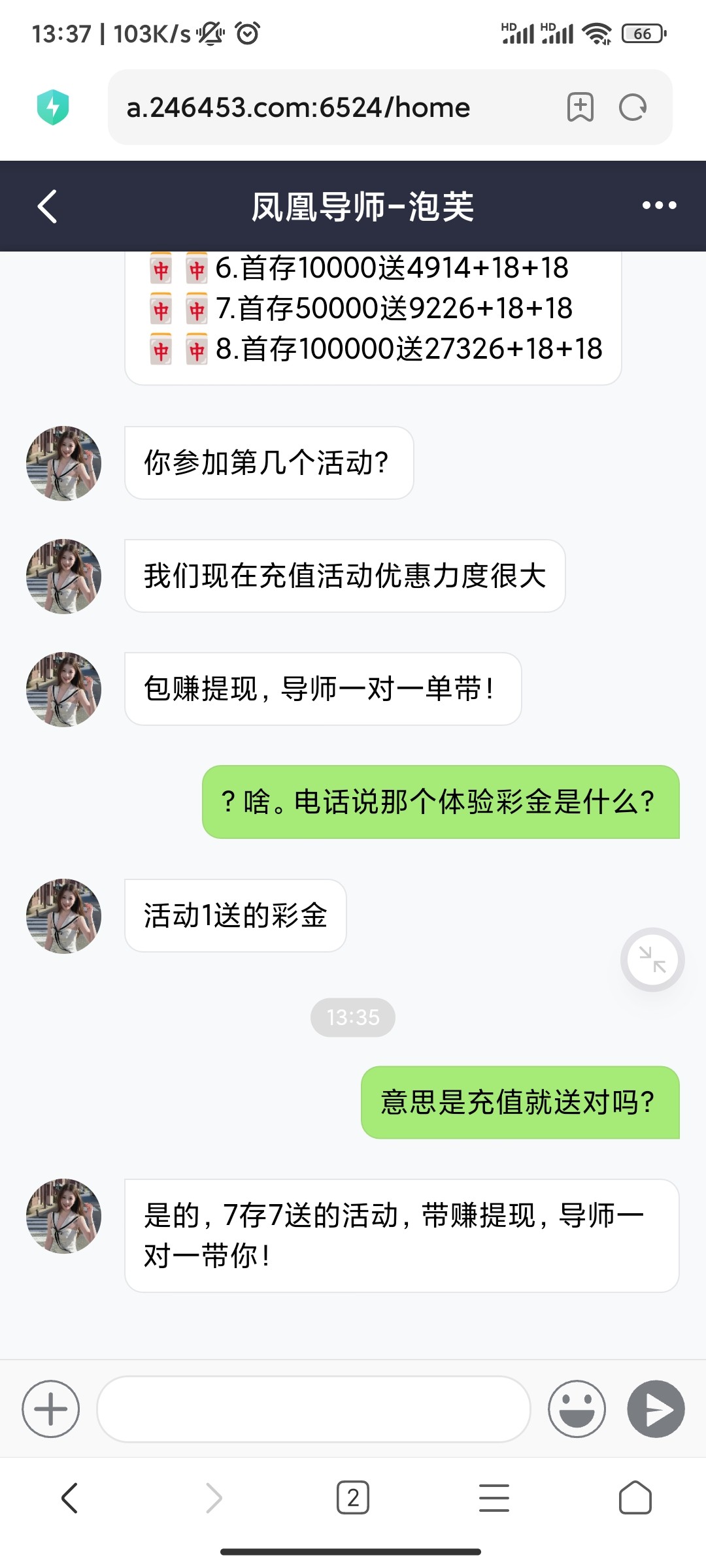 我也接到电话了,也是这个樱桃,让充值,电话里说的18彩金是死活不给,