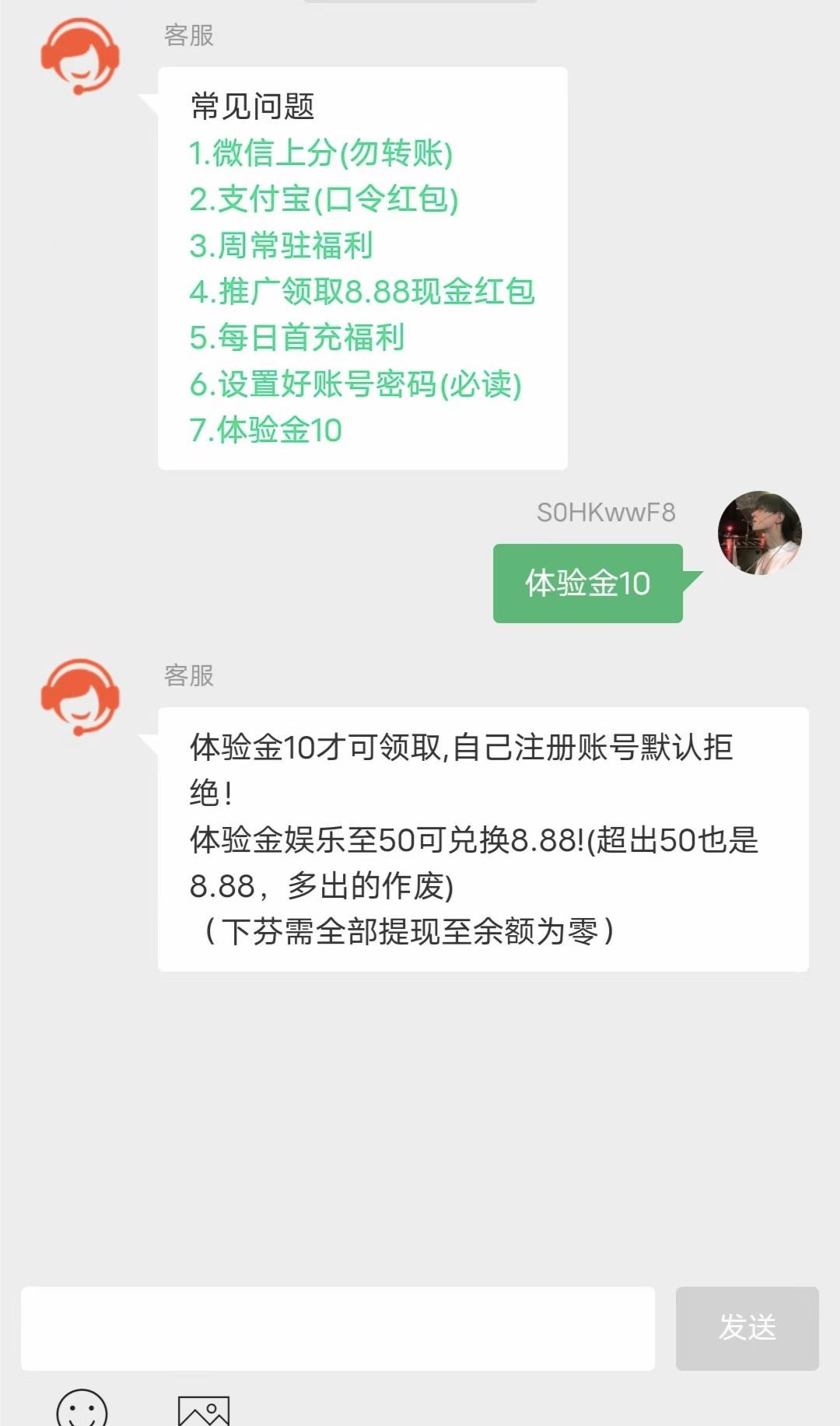 你这是什么时候的,客服直接来一句:没有体验金,只有新人首充