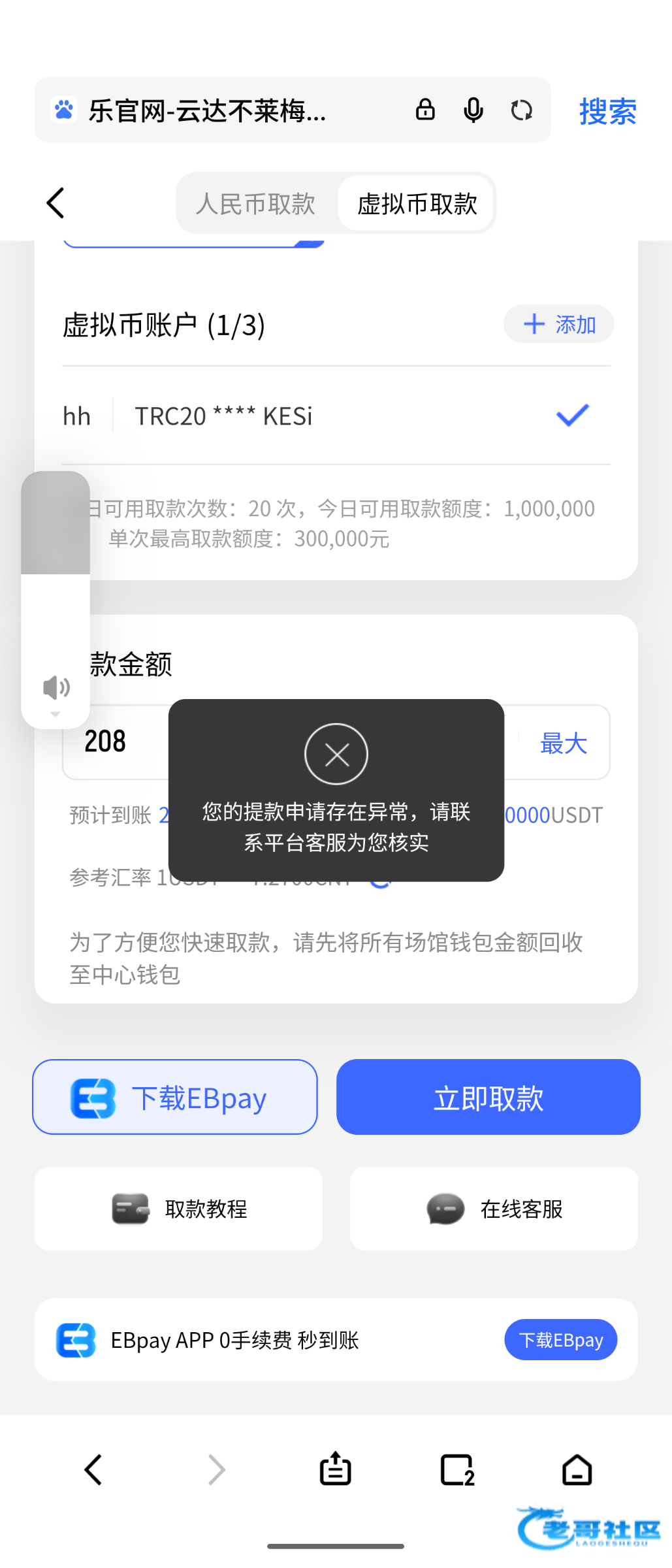 我藏了6个20的,留了800全扣了,然后冲了100输了,就去开了免费,前前后后6 个20的免费才开出来3000,然后百家乐上头输到最后提了1000,等了5个小时才到账