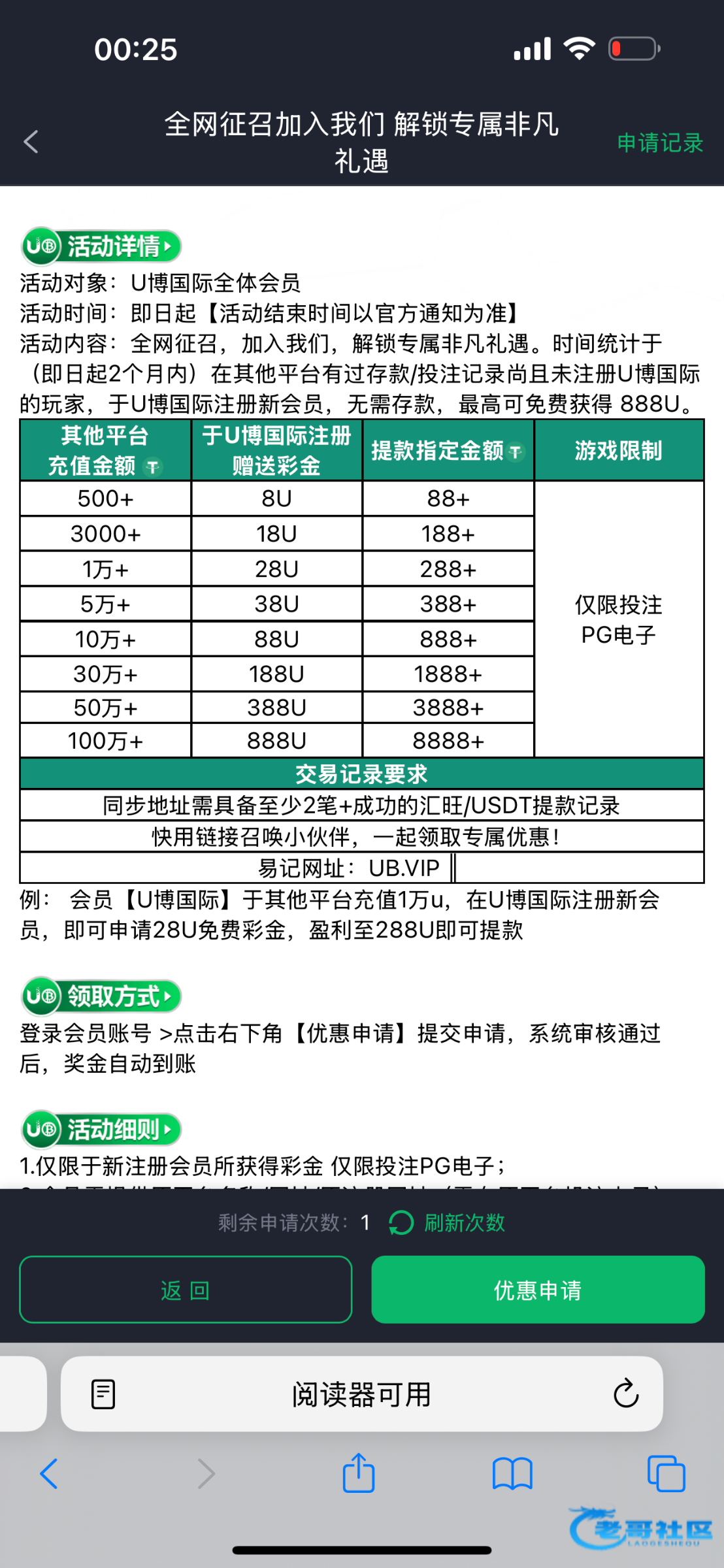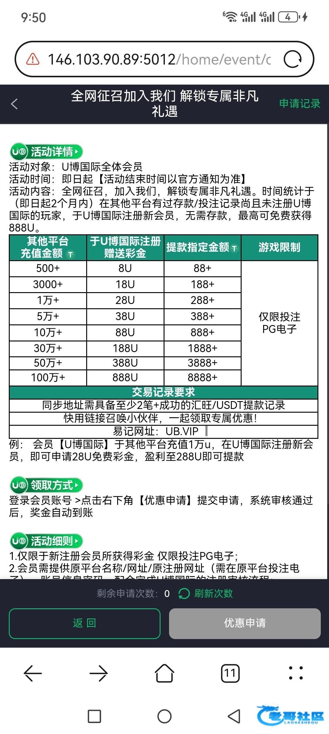 您好,网征召加入我们 解锁专属非凡礼遇该活已经下架,建议您关注我司新人存款优惠哦。请完成注册账号参与首次存款50U送3U,100U送5U,500U送8U最高8888U;第二次存款100U送8U,最高可获得3888U;第三次存款500U送18U,最高彩金可以获得 8888U 希望这些欢迎语能够为您的新平台游戏增添一些热情和活力!祝玩家们玩得开心!什么东西都要了最后下架了
