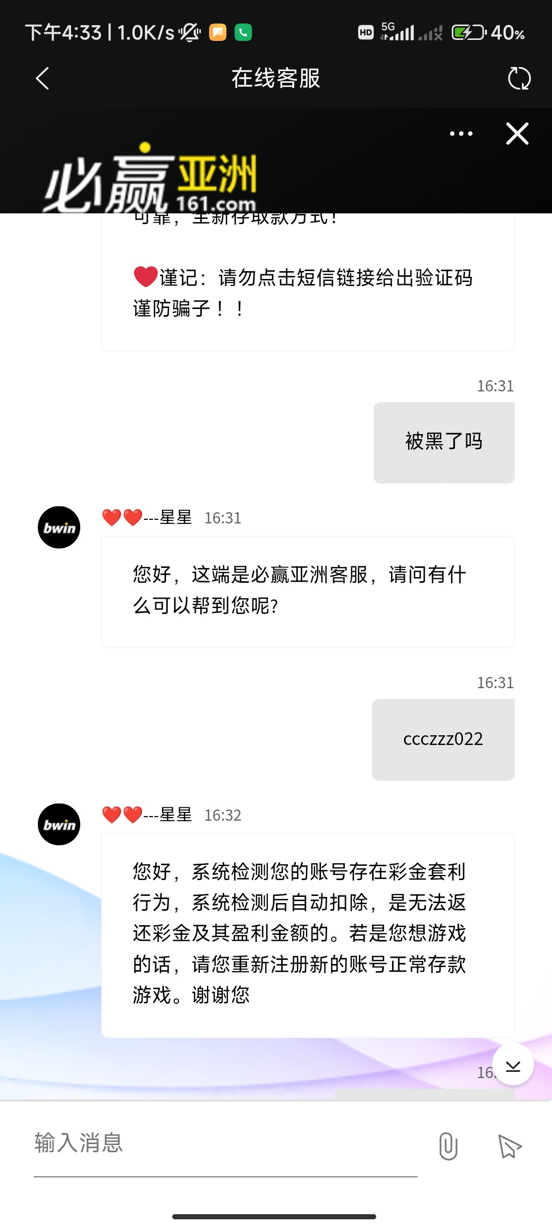 必赢黑了 提400直接禁用账号