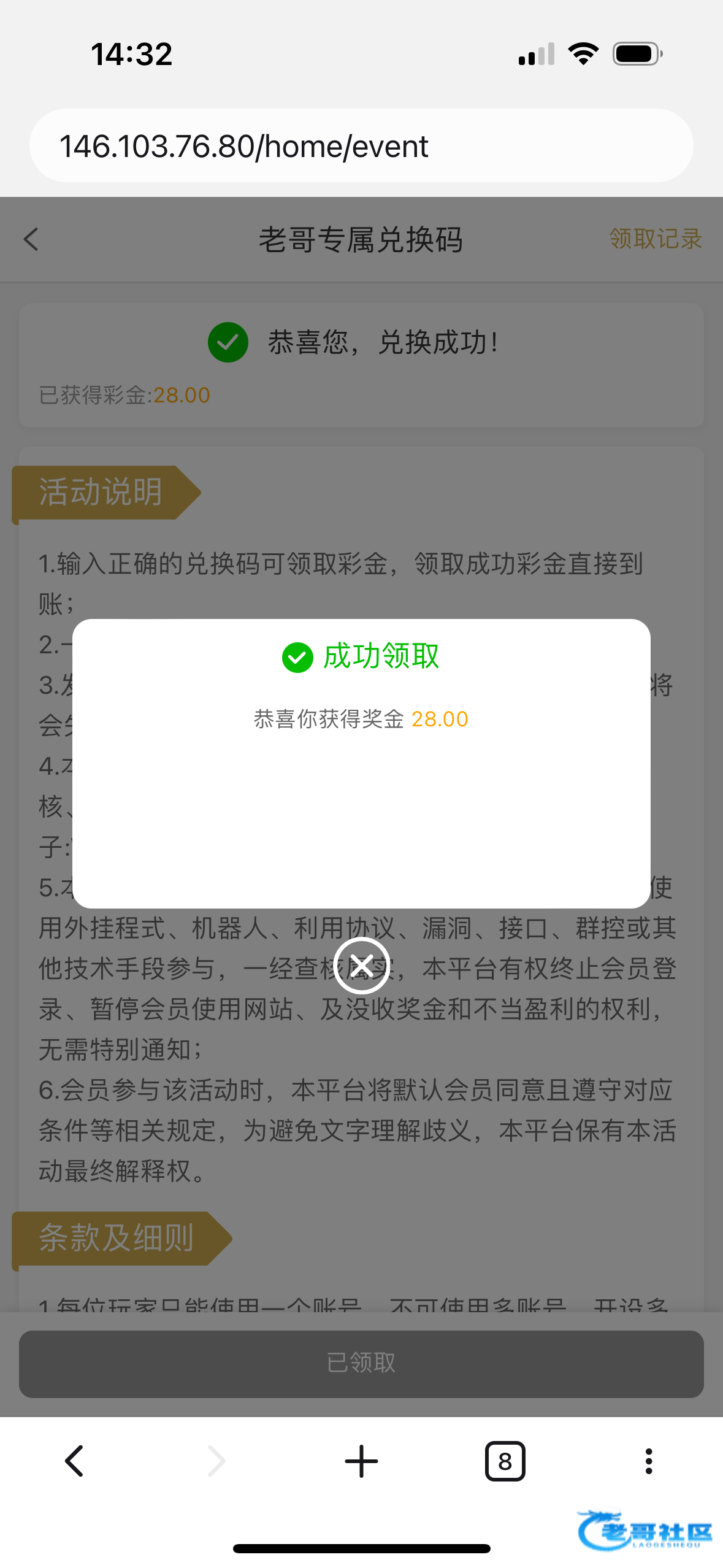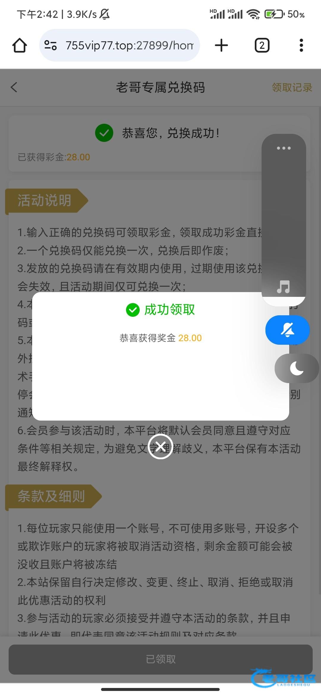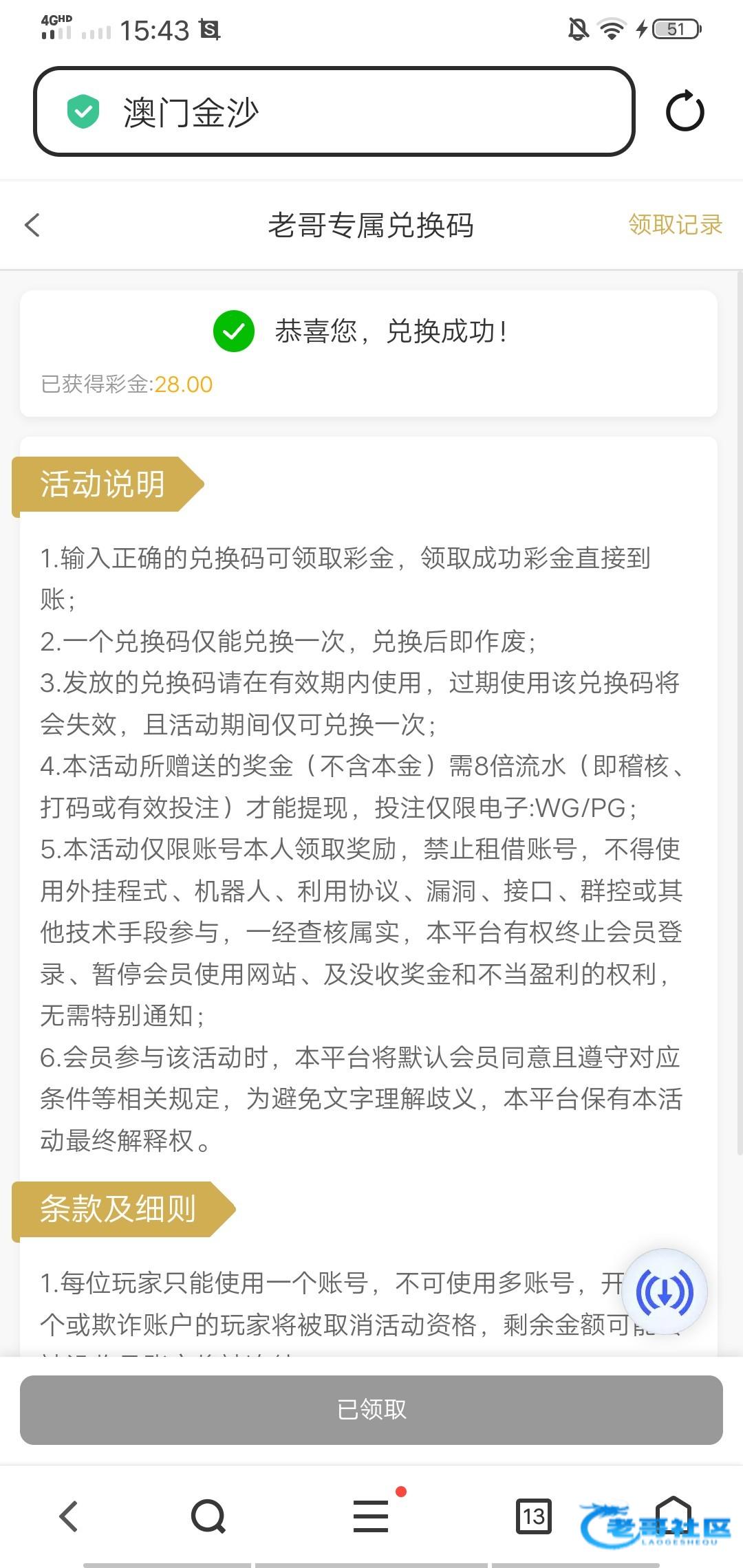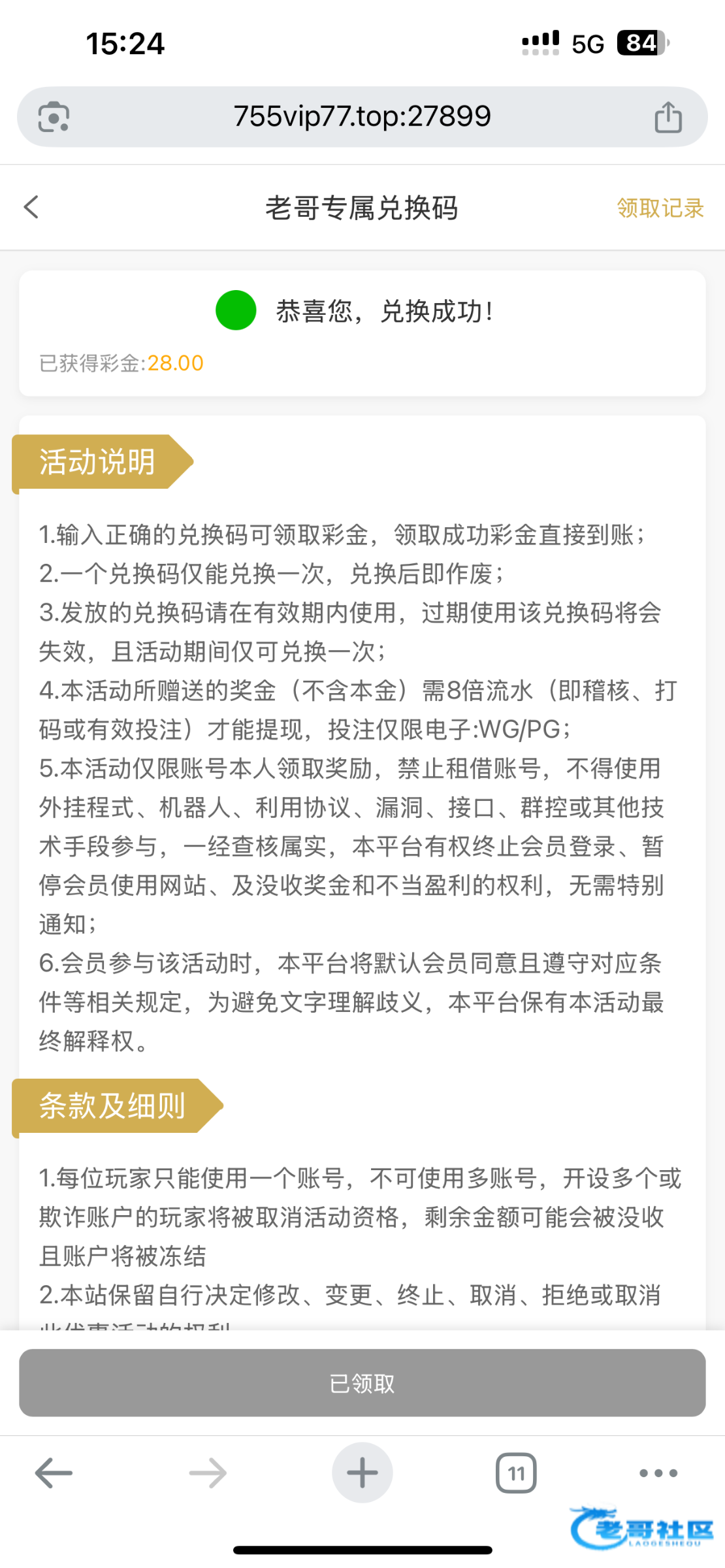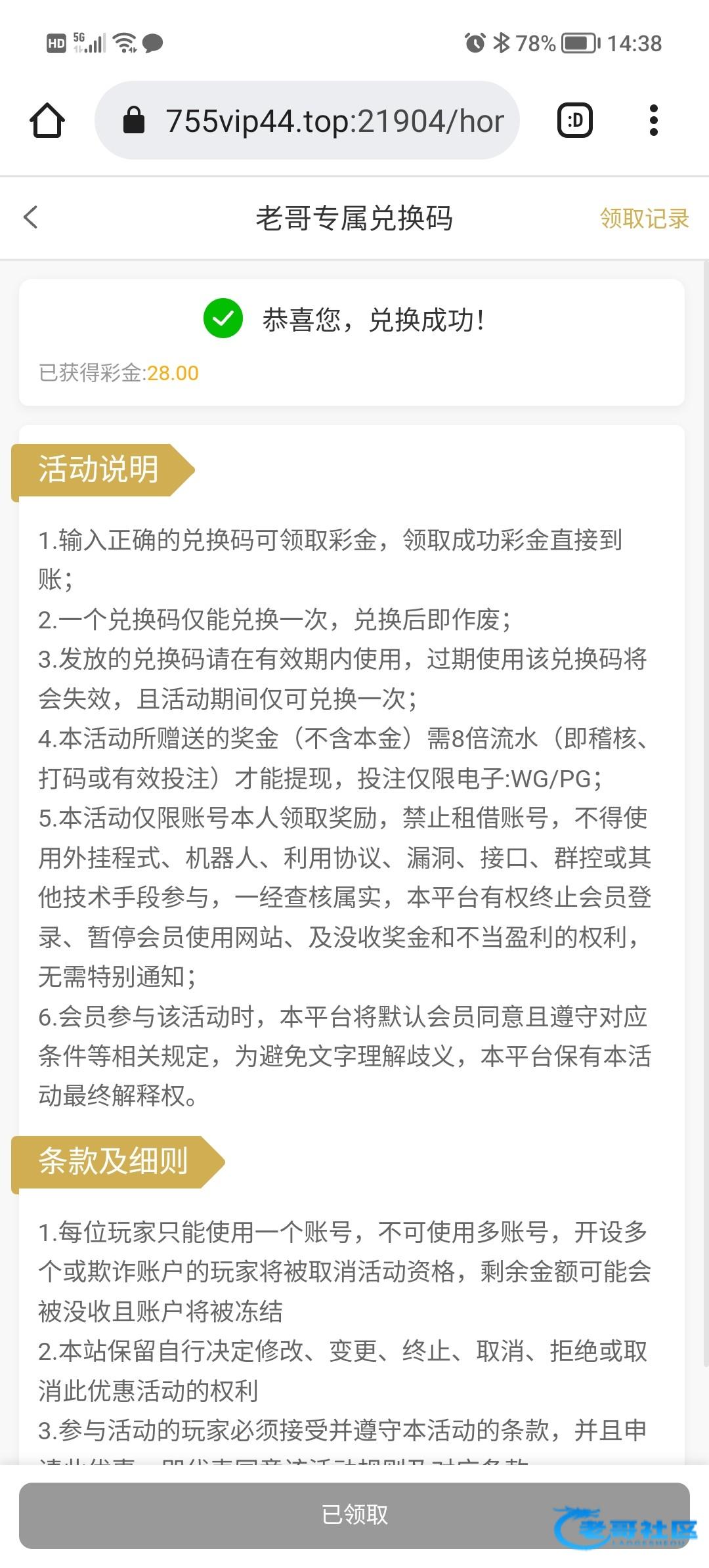 领到28感谢老哥