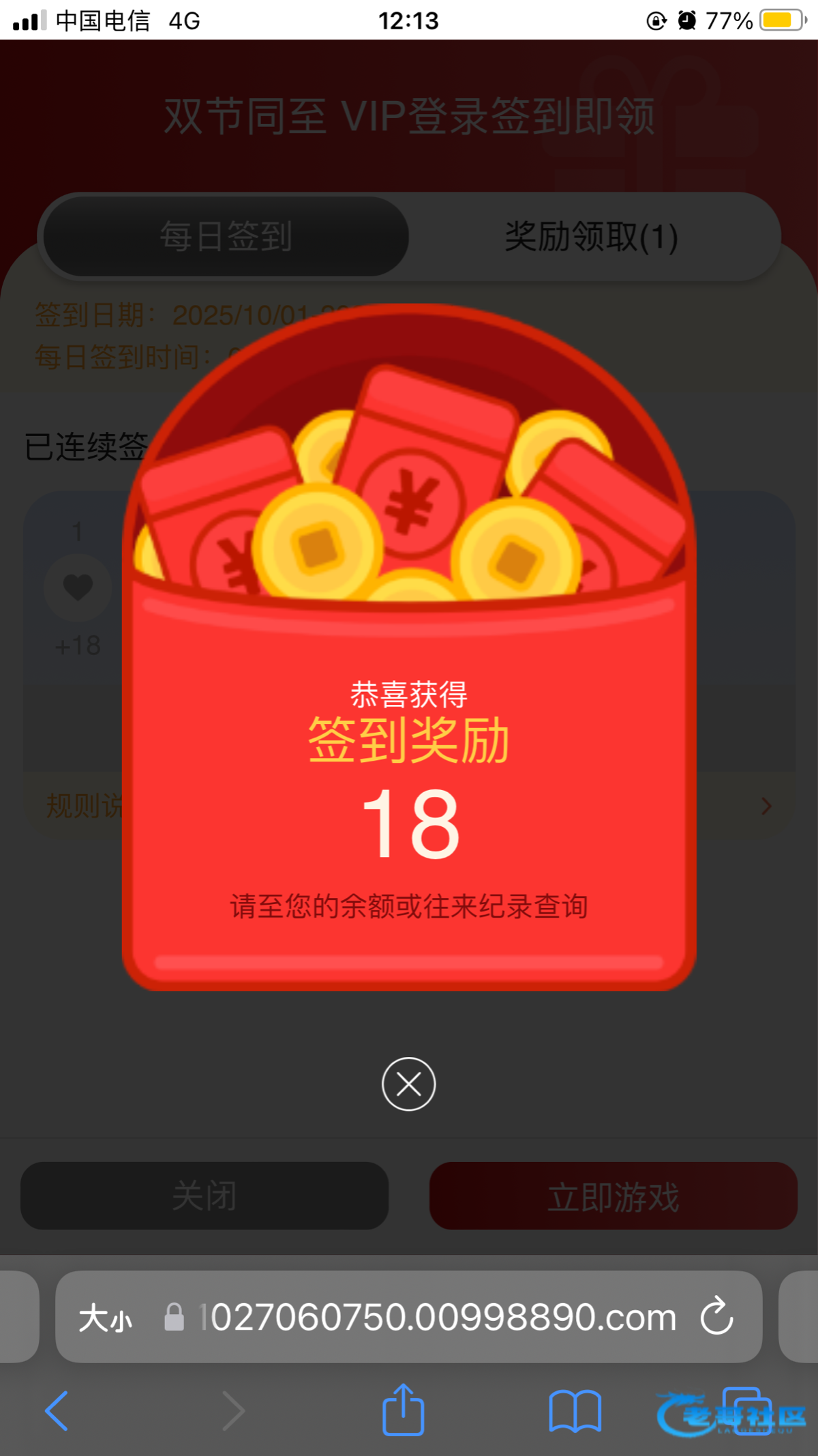 8890.com 活动说v1以上才能签到领 我v2领了18 不知道没有v1能不能领 自测吧 一倍水10块钱就能提