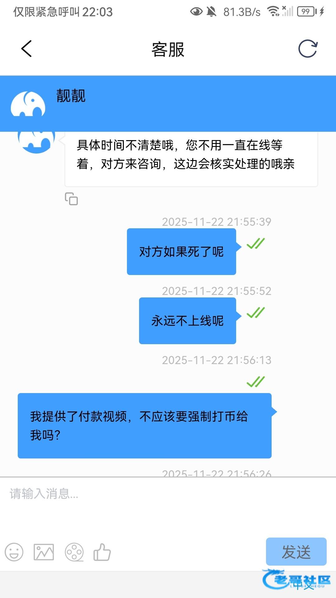 遇上算你倒霉吧,对面没联系,肯定给客服一些时间,我觉得你有视频,付款名字,对方名字对上应该立马打币,别骂客服,她也是人,有情绪,你说话好听点,说不定已经给你打币了