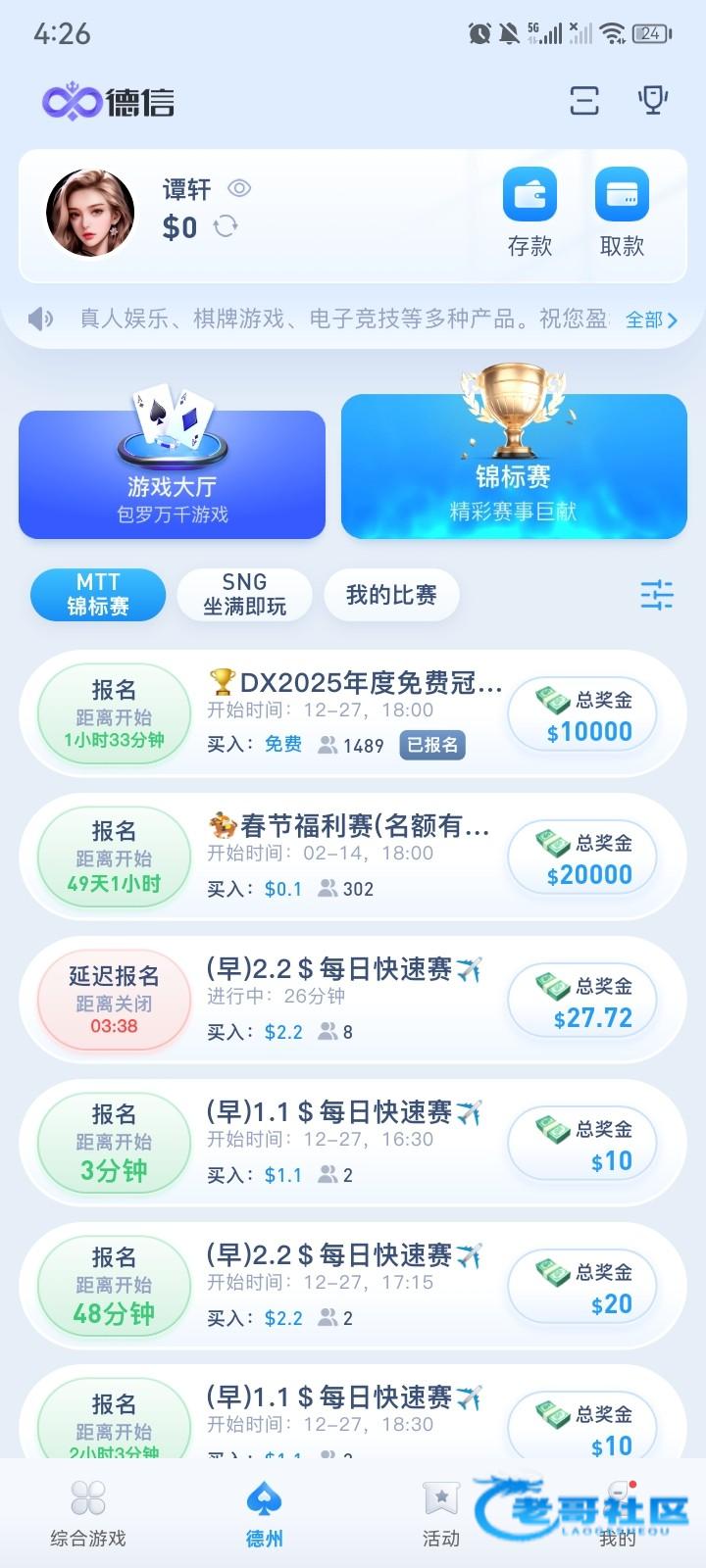 免费报名可以先去报名下午六点开赛,打进奖圈75名也最少50u官网地址 dx.vip